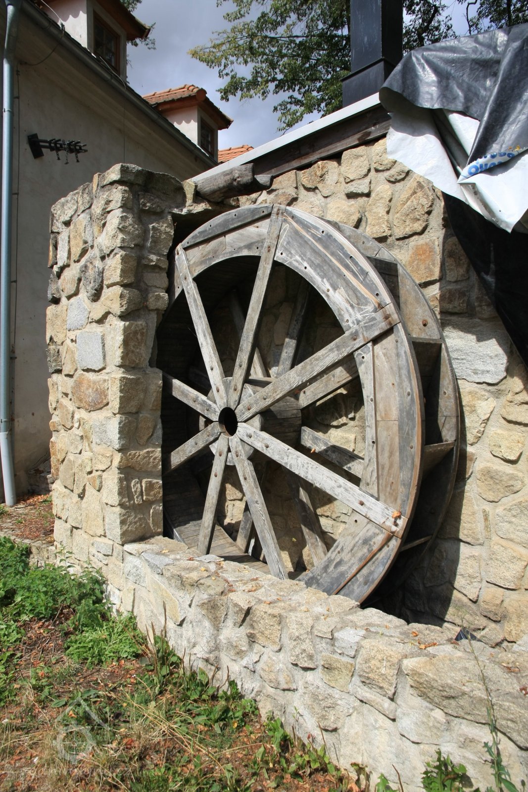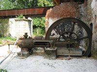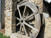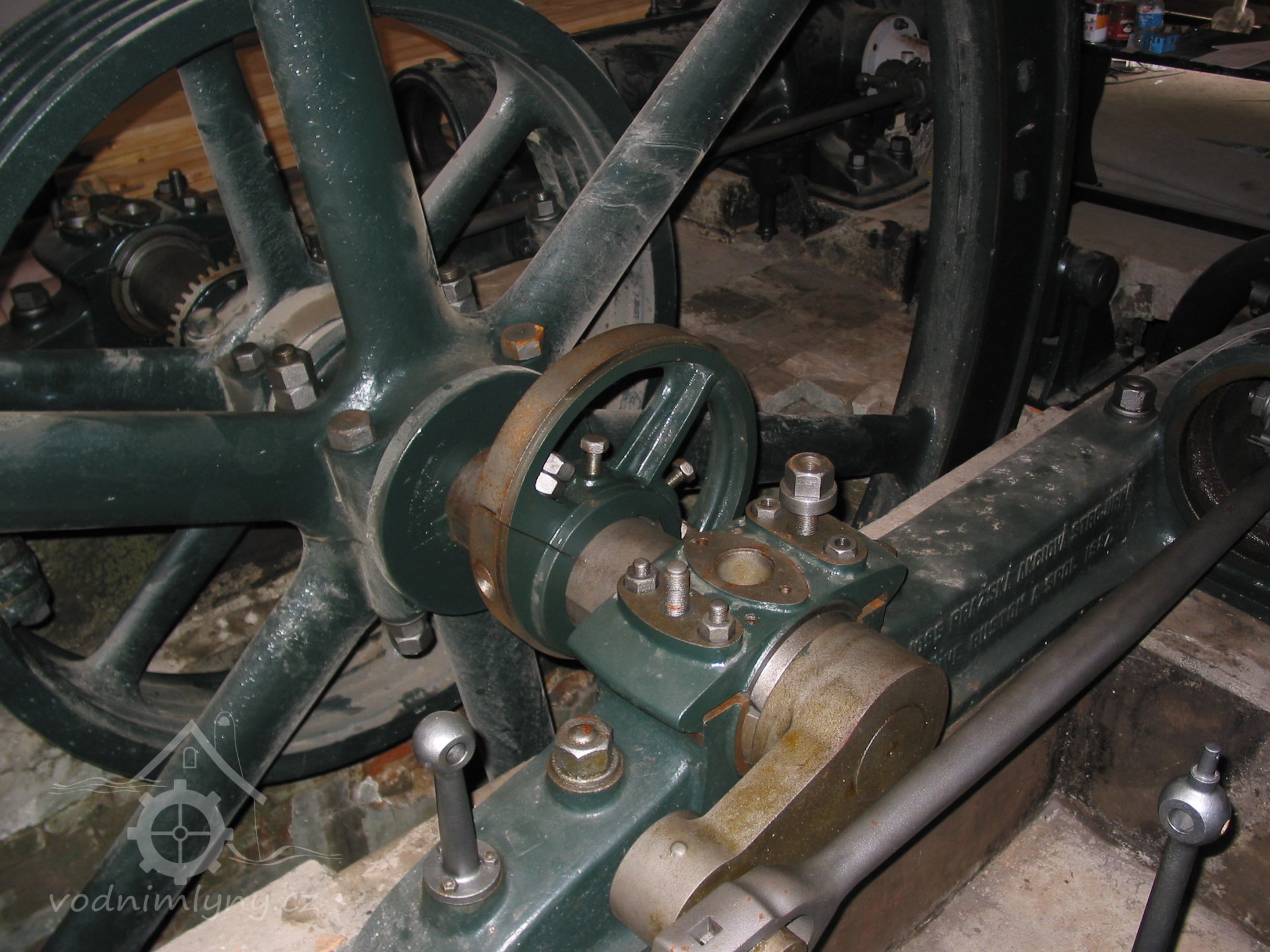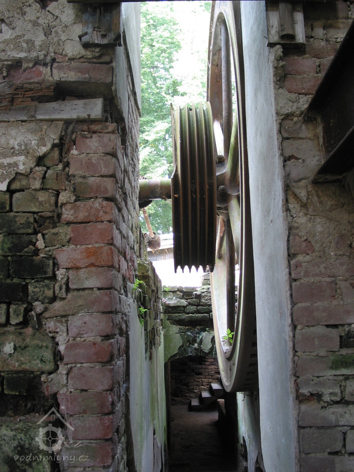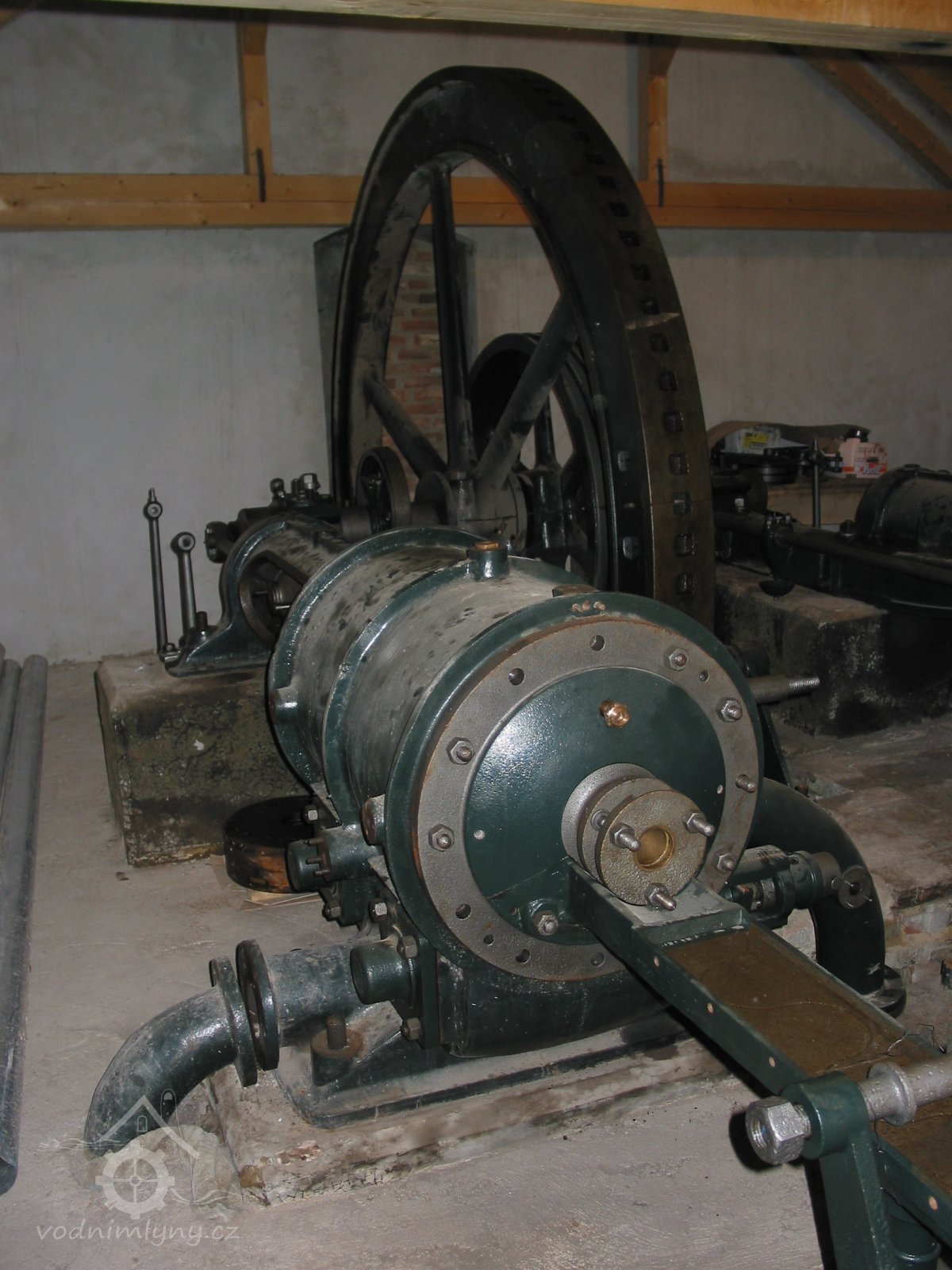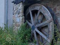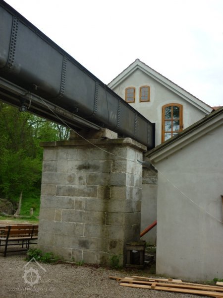 Popisvodní kolo o průměru cca 8 m a šířce korečků 4 m, šlo o hnací agregát značné hltnosti omezených provozních hodin.