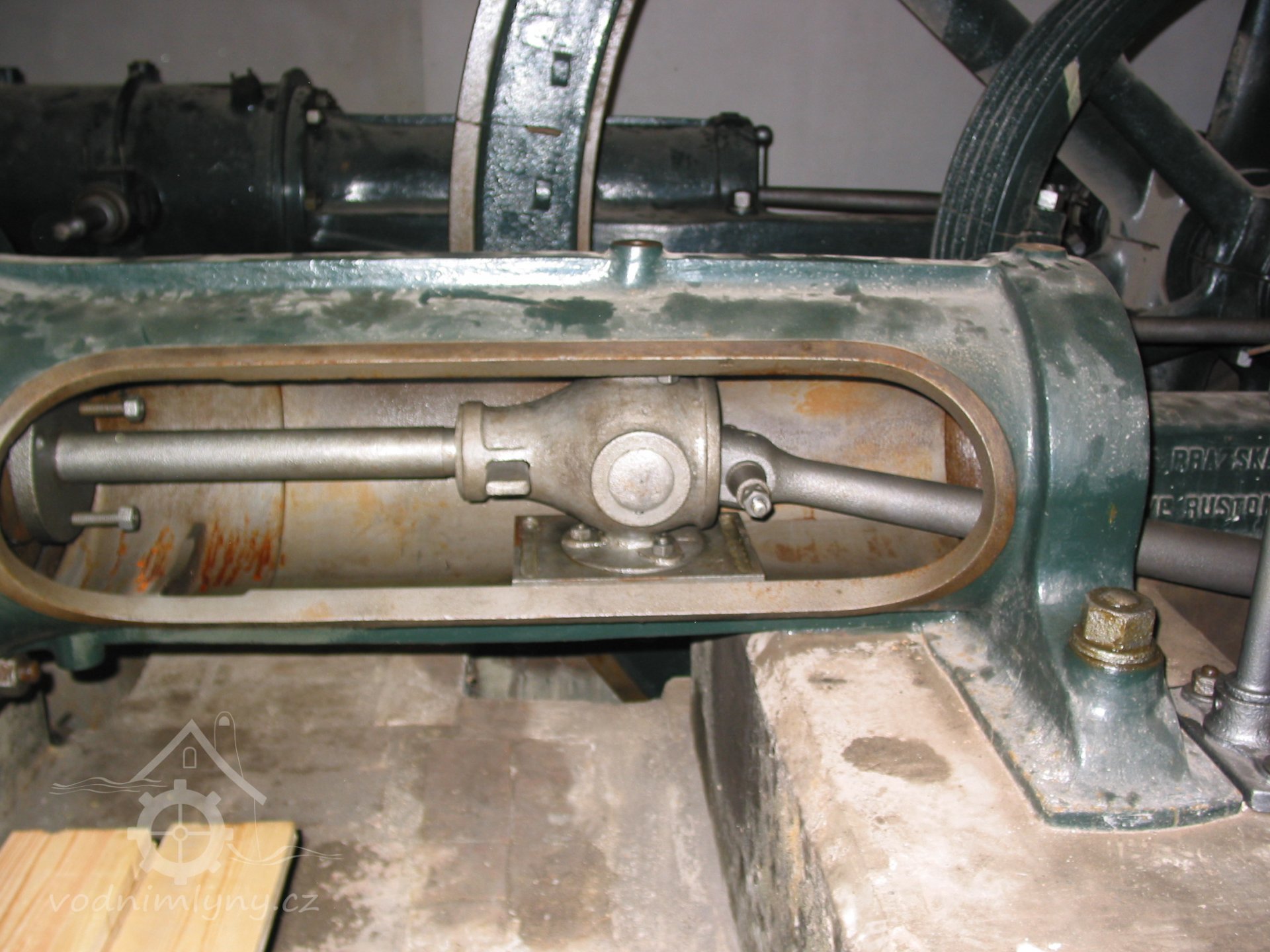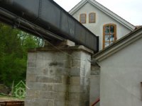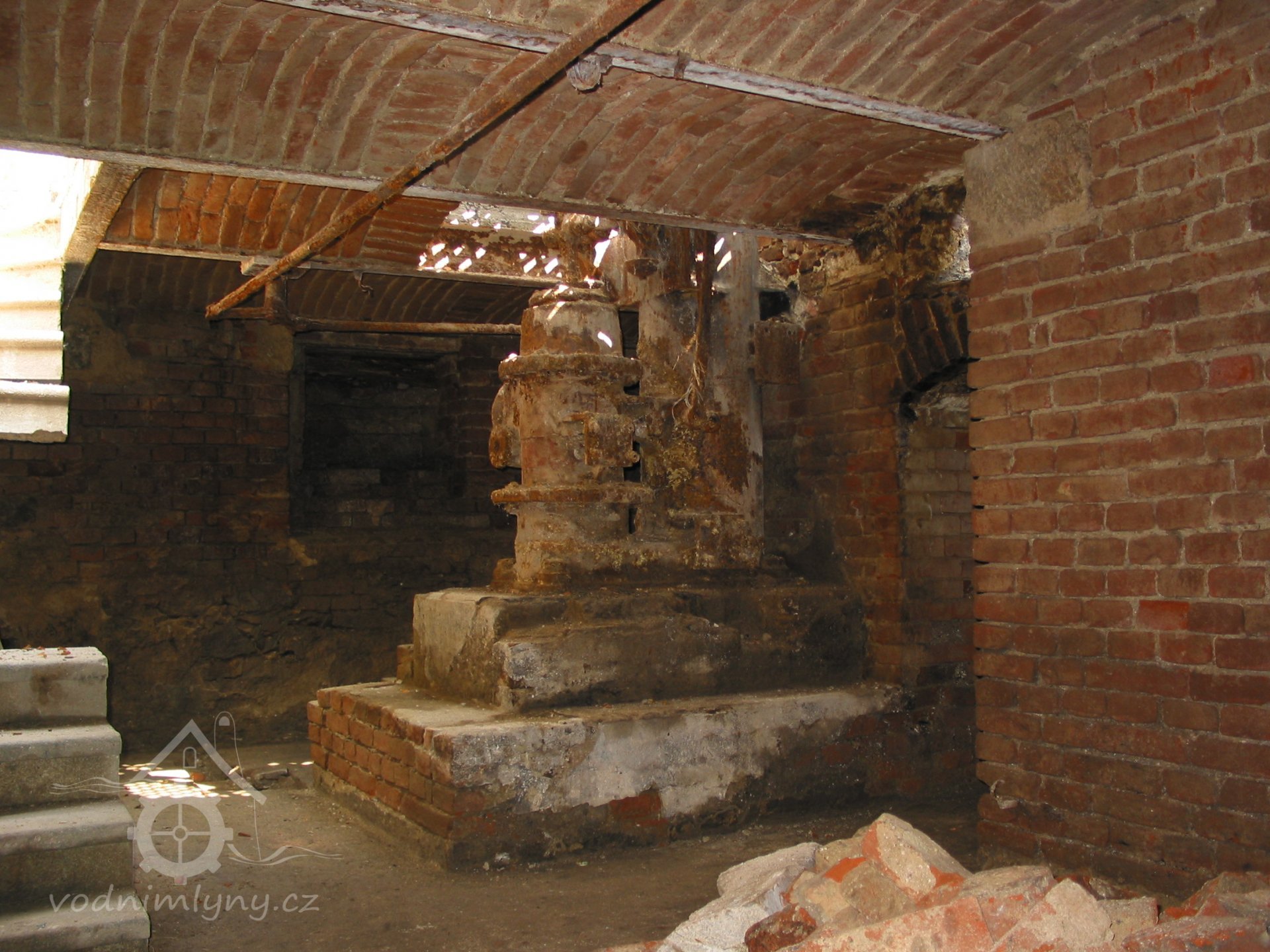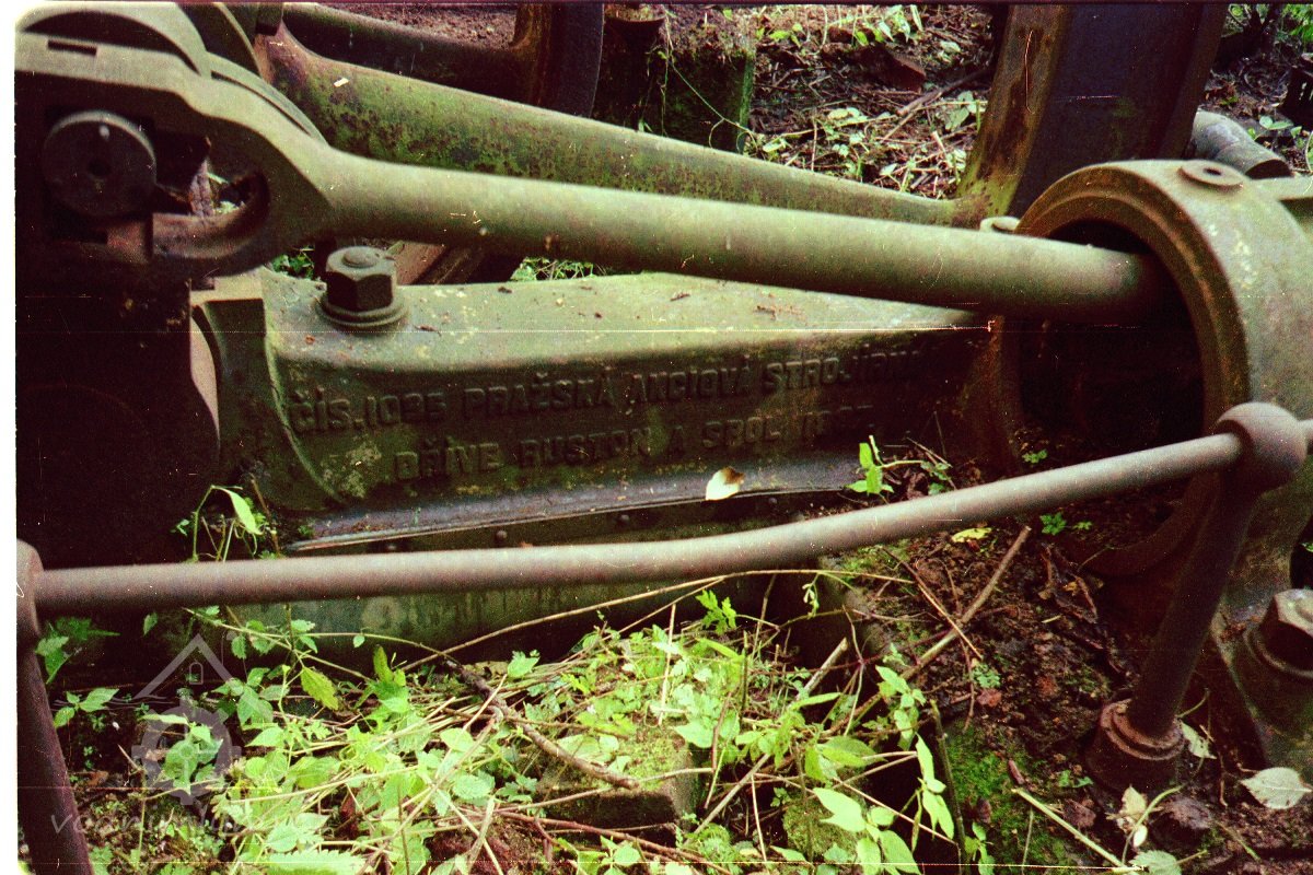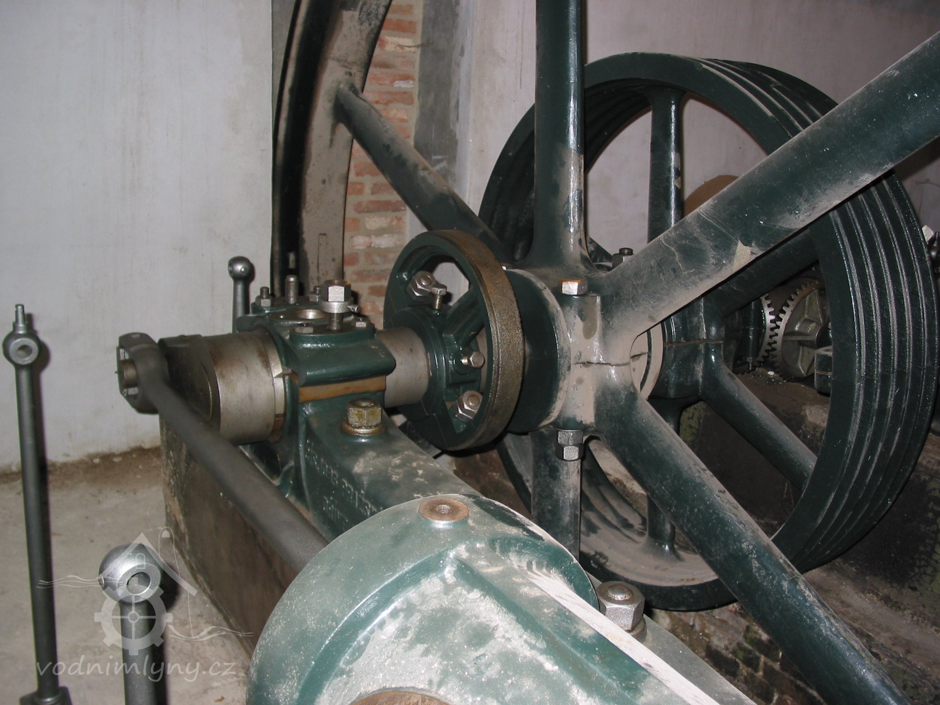 V boční zdi strojovny je dnes patrný kamenný blok, který tvořil základ pro upevnění ložiska.