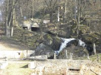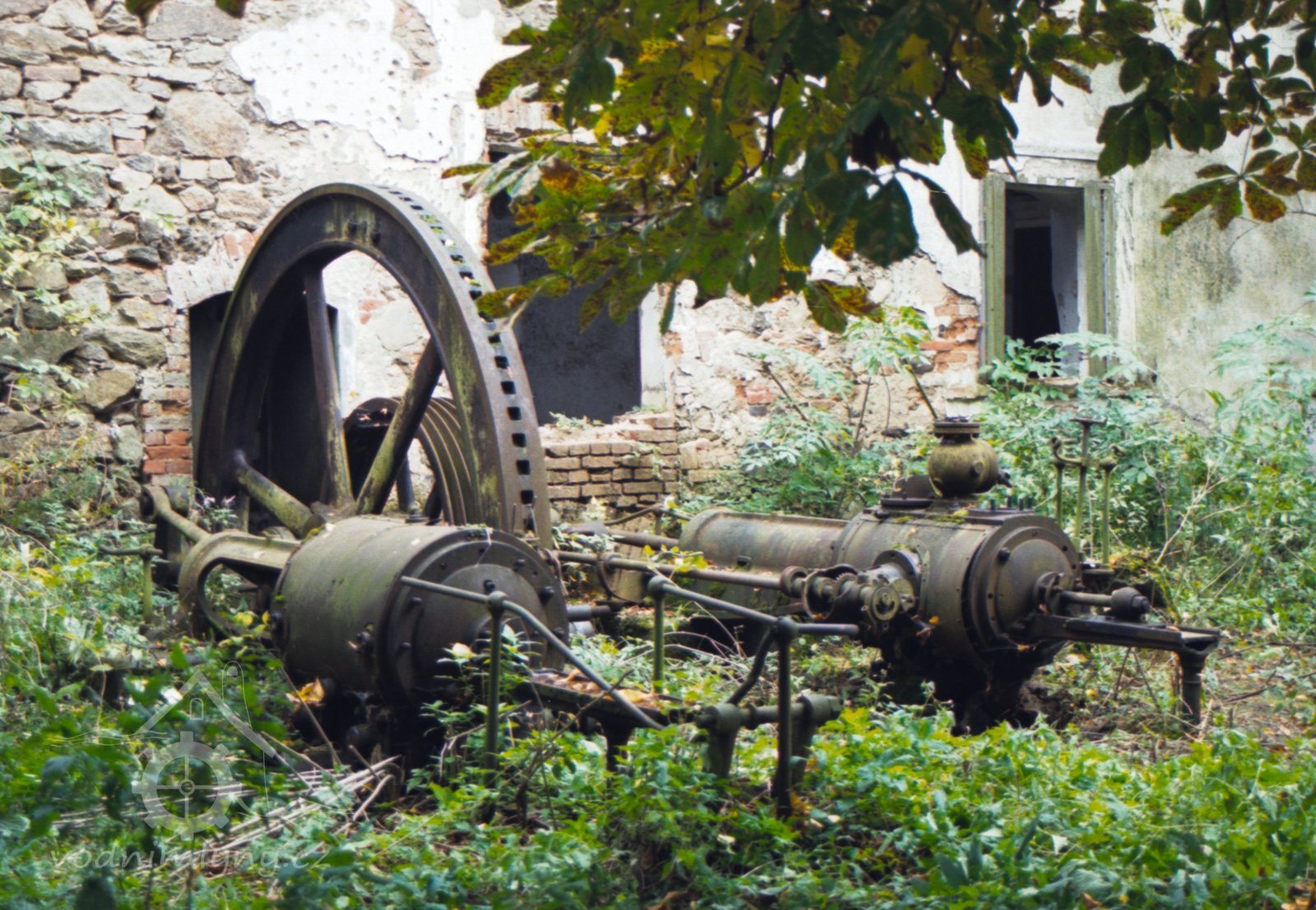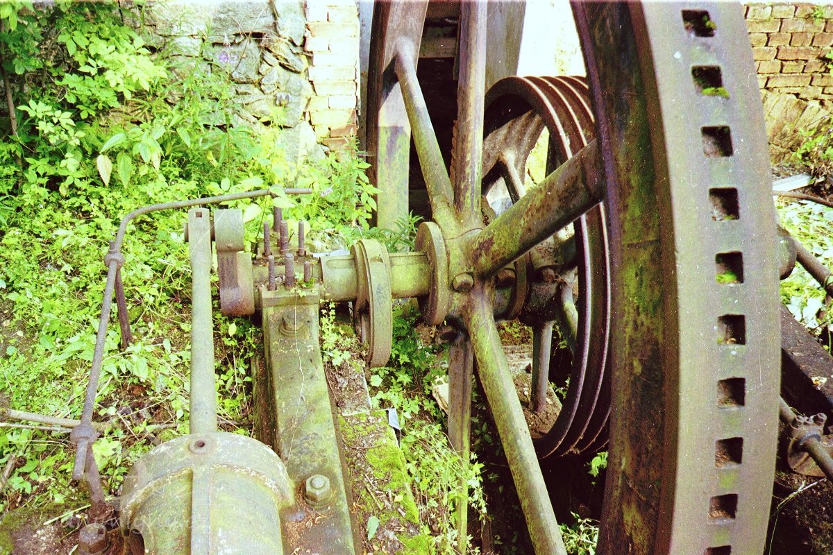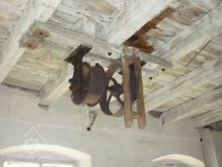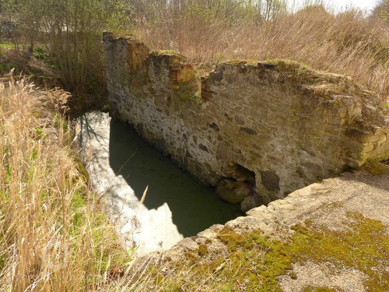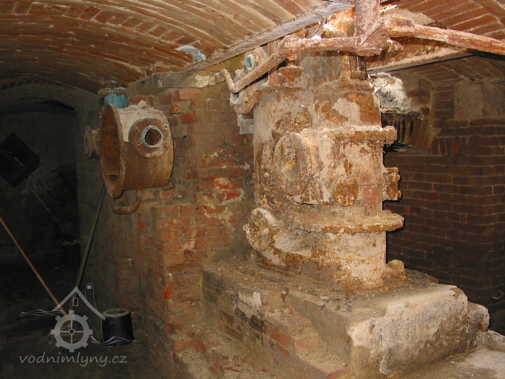 V boční zdi strojovny je dnes patrný kamenný blok, který tvořil základ pro upevnění ložiska.