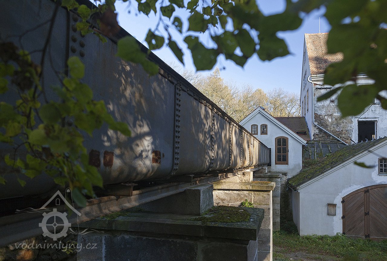 Voda do turbíny byla přiváděna potrubím v hrázi, které ústilo do vantroku, tj. otevřeného ocelového koryta, vedoucího nad úrovní terénu. Koryto, umístěné na kamenných pilířích, je v tomto stavu od roku 1888. Voda ke mlýnu je přiváděna ze Staroměstského rybníka dvěma přepadovými koryty, které jsou tesány do rostlé skály a vytváří zajímavou konfiguraci v terénu. Dalším technickým prvkem v areálu je odpadový kanál, který je rovněž tesaný do skály.