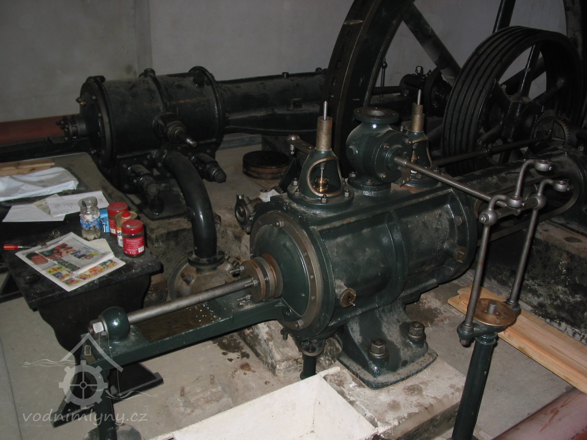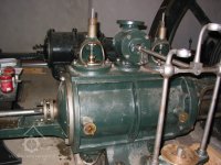Kompaktní parní stroj s Radonovicovým rozvodem na vysokotlaké části a Corlisuvim šoupátkem na nízkotlaké části ... stroj má kondenzaci s vývěvou... odstředivý regulátor typ Proll chyby. Asi 80 HP.