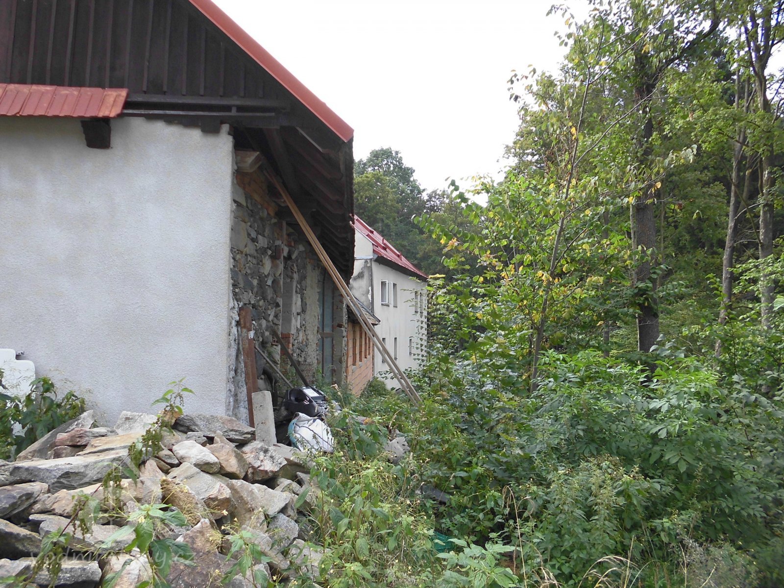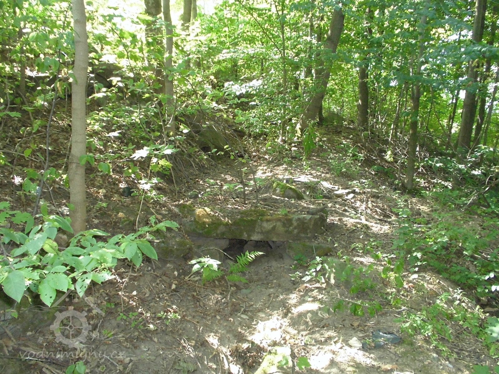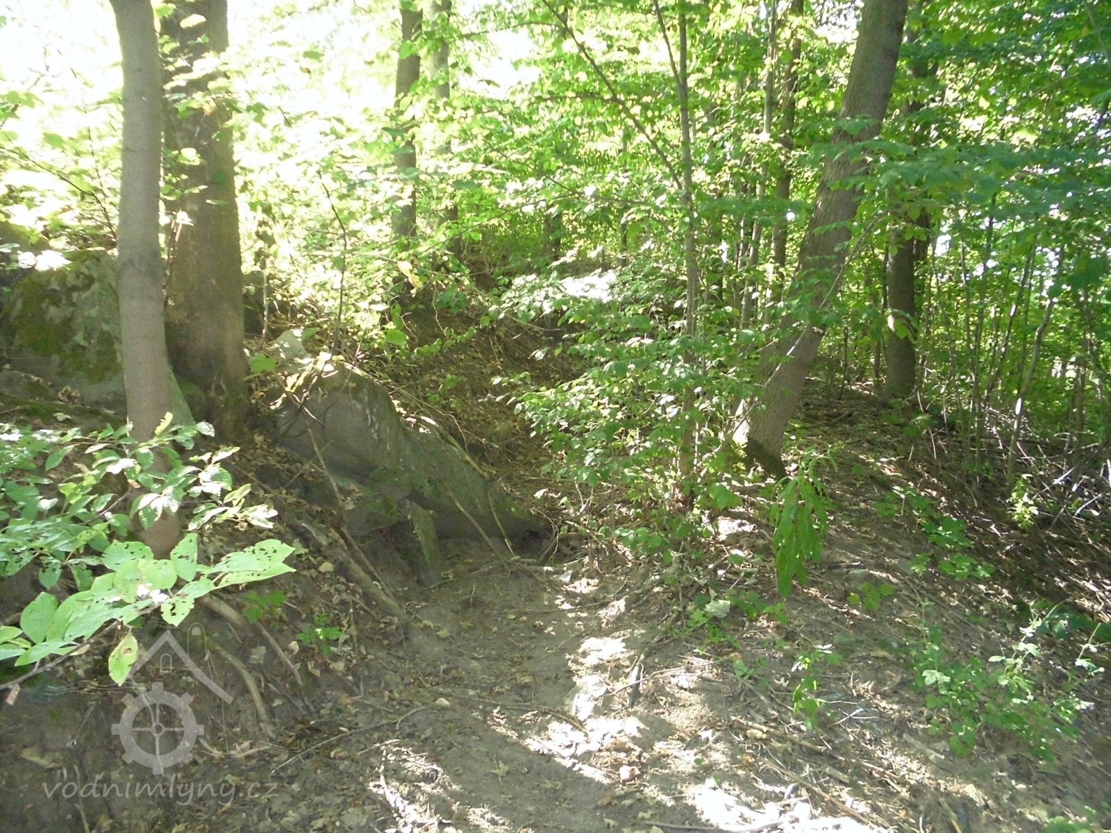 Bývalý mlýn u kterého stávala také pila, se zbytky náhonu.