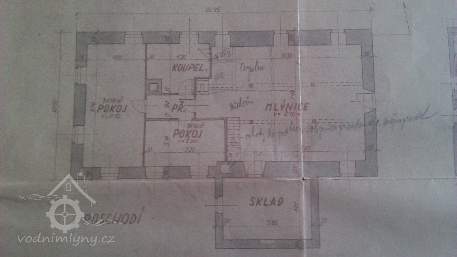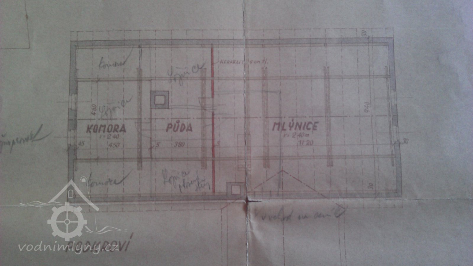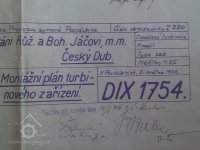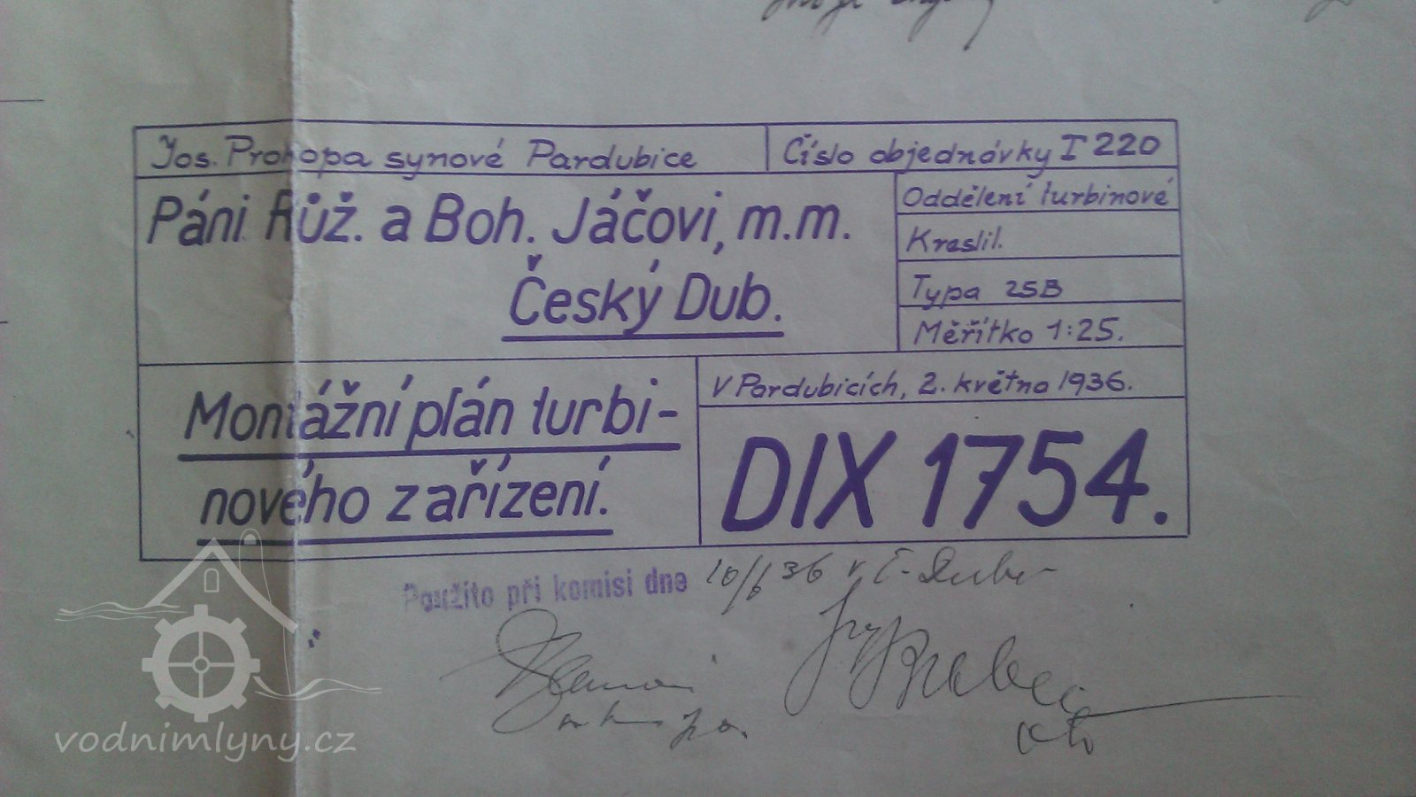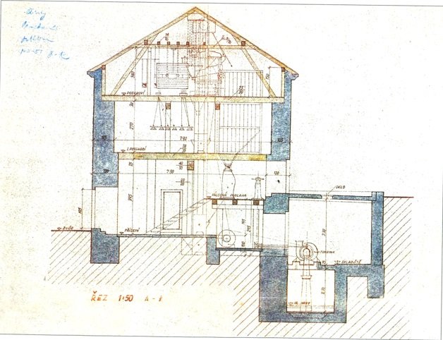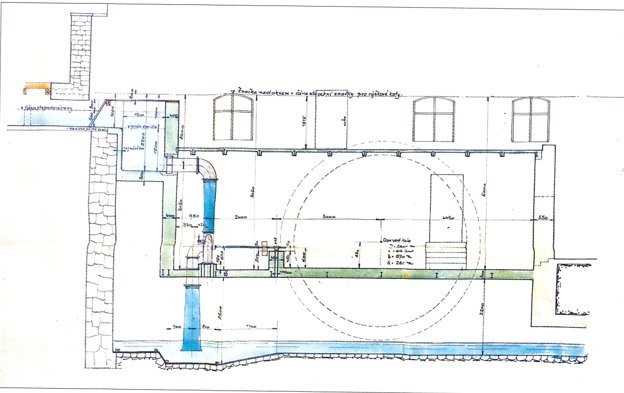 Popis1936 instalována spirální Francisova turbína, prům. oběžného kola 250 mm, spád 6,3 m, hltnost 94 l/s, při účinnosti 75% výkon 6 HP.