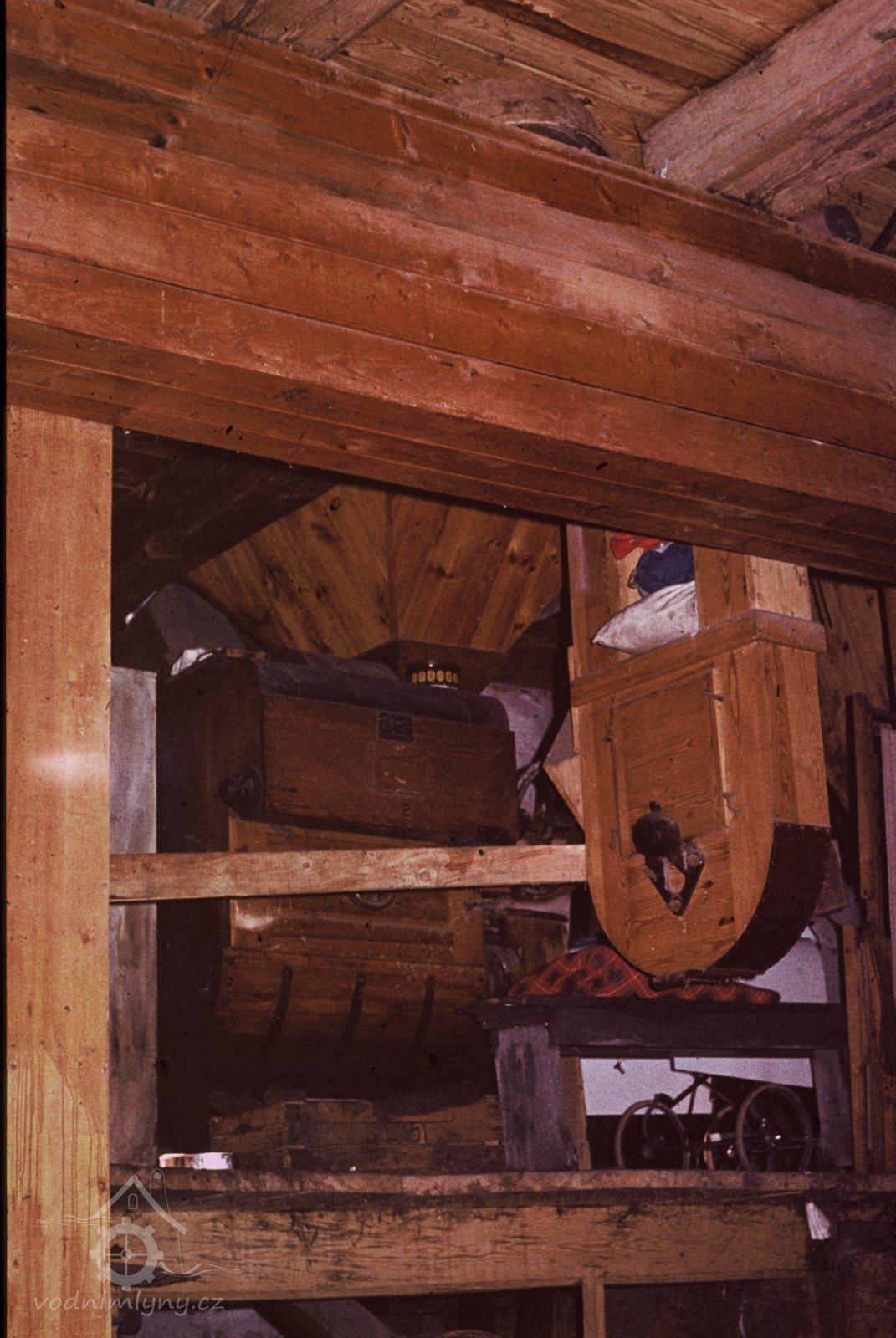 V suterénu se zachovala část starého zařízení mlýnice a zajímavé dřevěné konstrukce. Ve zvýšeném přízemí je litinový šrotovník. Zajímavý je asi 12 metrový, půl metru silný trám, držící celé další podlaží. V přízemí jsou ještě zachovány trámky, původně ozdobně zasekávané.