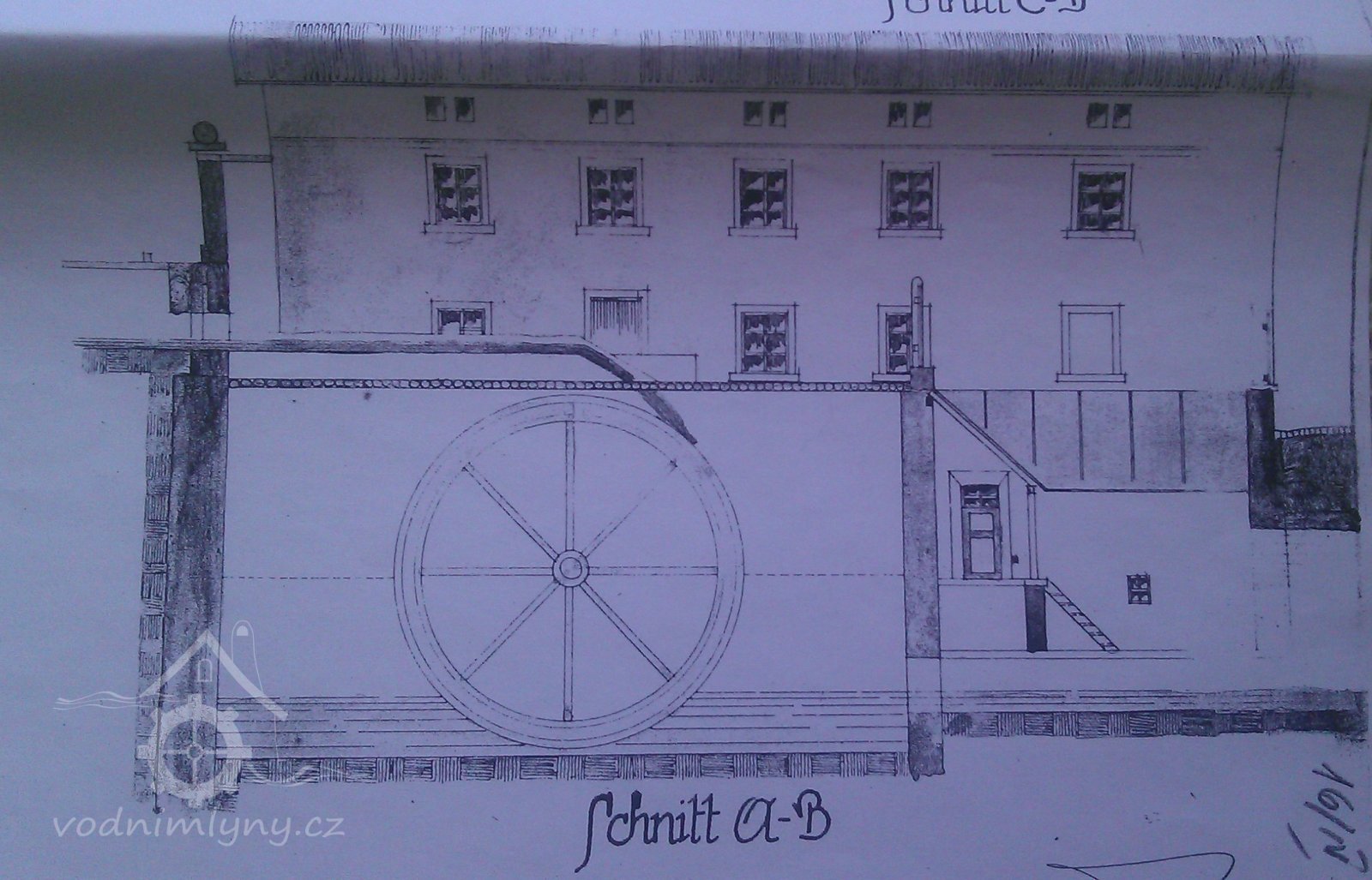 Dle stabilního katastru z roku 1843 byl mlýn původně poháněn dvěma vodními koly na vrchní vodu. Později bylo jedno kolo odstraněno a druhé fungovalo až do 30. let 20. st. Mělo průměr 5,8 m, po obvodu mělo 66 lopatek o šířce 65 cm a hloubku korečků 28 cm. Obvodová rychlost byla 1,8 m za sekundu, spotřeba vody asi 100 litrů za sekundu. V letech1936-1937 bylo vodní kolo nahrazeno spirální Francisovou turbínou o průměru oběžného kola 250 mm na spád 6,3 m. Dle výpočtu turbína potřebovala 94 litrů za sekundu, výkonnost při využití 75% vodní síly byla kolem 6 HP. (MH)