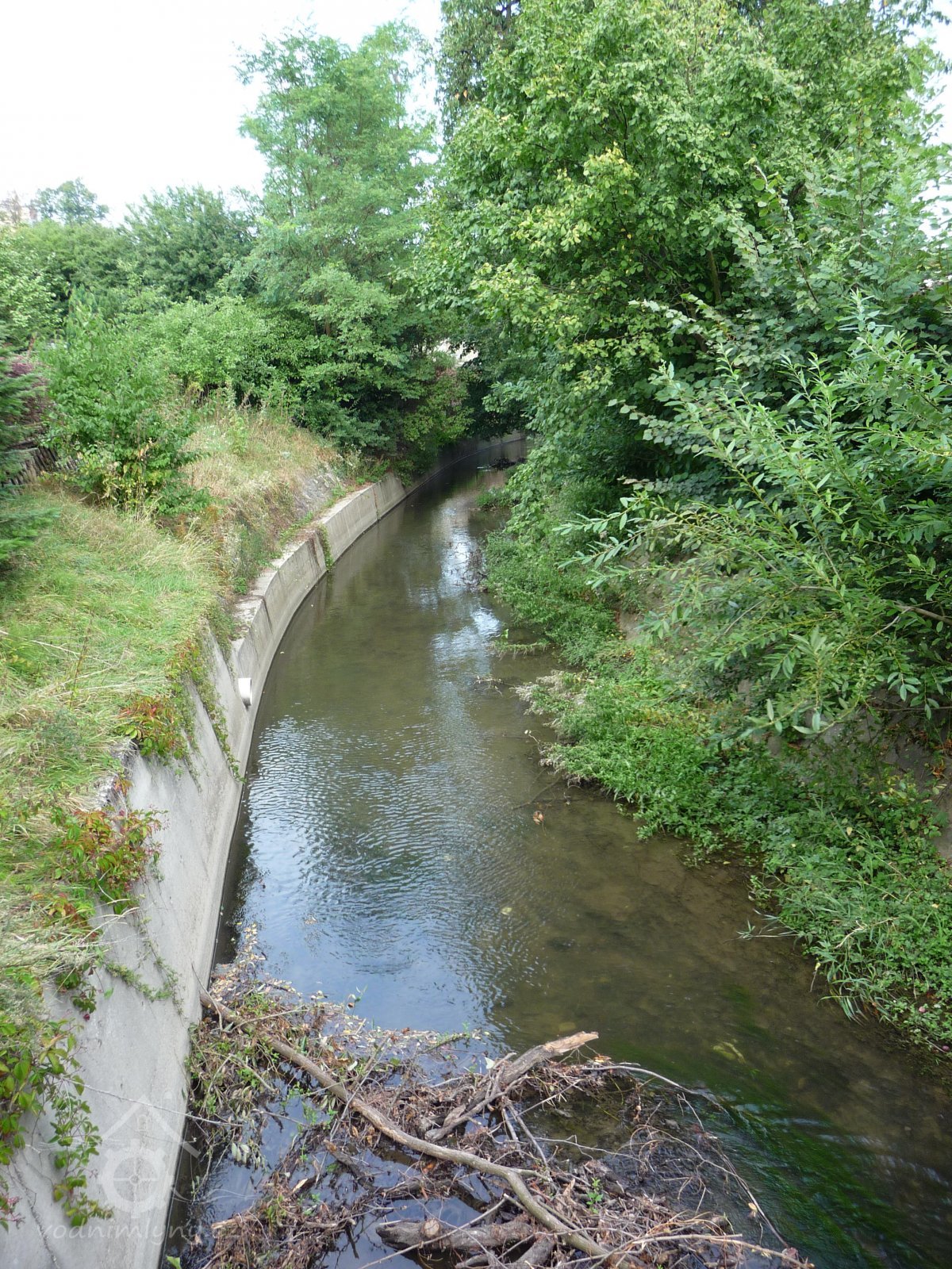 Náhon protéká mezi velkými budovami, v době návštěvy nebyla patrná činnost žádných zařízení.
