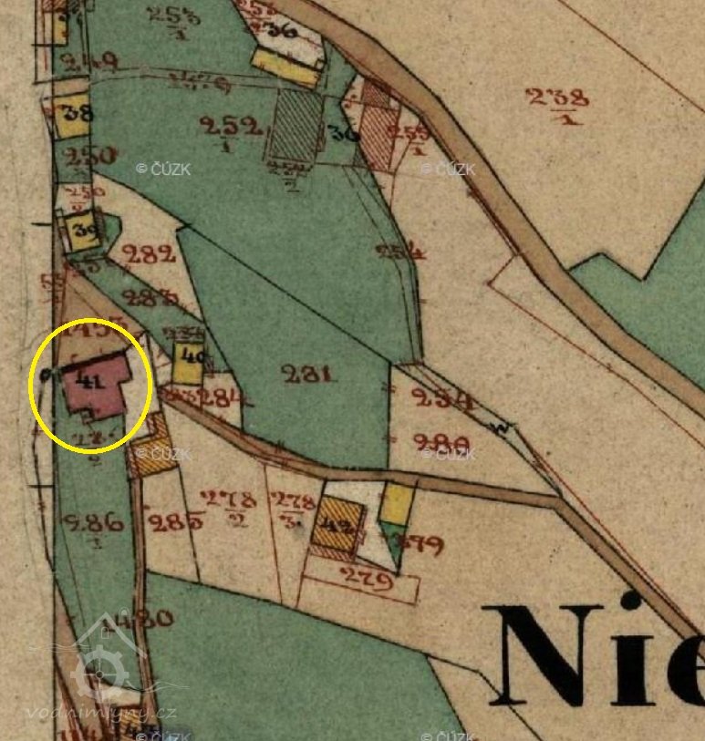 PopisV r. 1930 zde bylo 1 kolo na svrchní vodu, průtok 0,094 m3/s, spád 6,7 m, výkon 5,8 k.