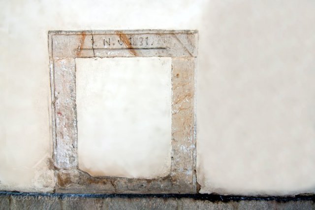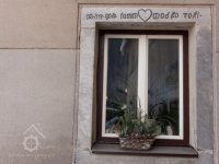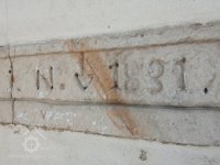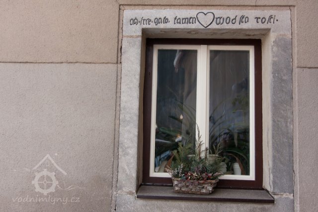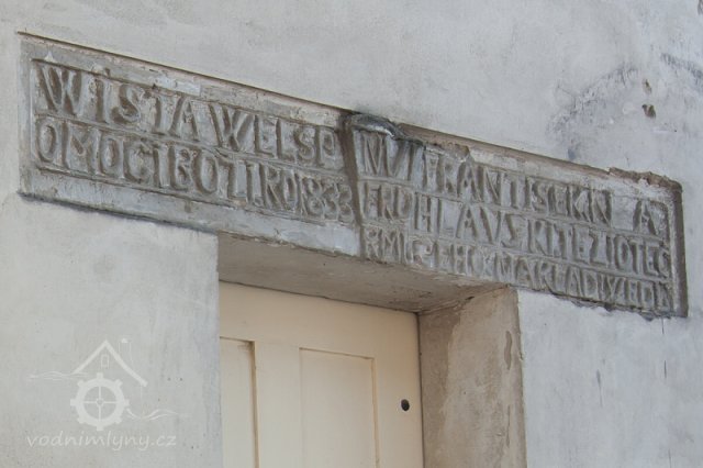 1833 nápis  na překladu nad oknem WISTAWELSP/OMOCIBOŽÍRO1833//FRANTIŠEKNA/HLAWSKITÉŽOTEC/GEHONAKLDWEDL (vystavěl s pomocí Boží roku 1833 František Náhlovský, též otec jeho náklad vedl)