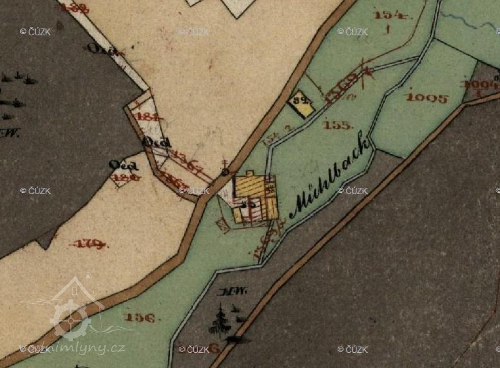 1654 Berní rula: mlejnec o jednom kole, majitel Michal Obst. K mlýnu náleží 5 strychů polí.