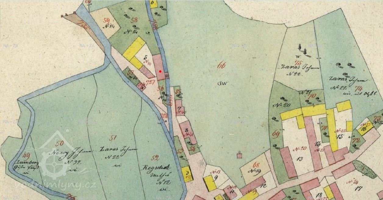 Mlýn je zachycen již na mapě I. voj. mapování.