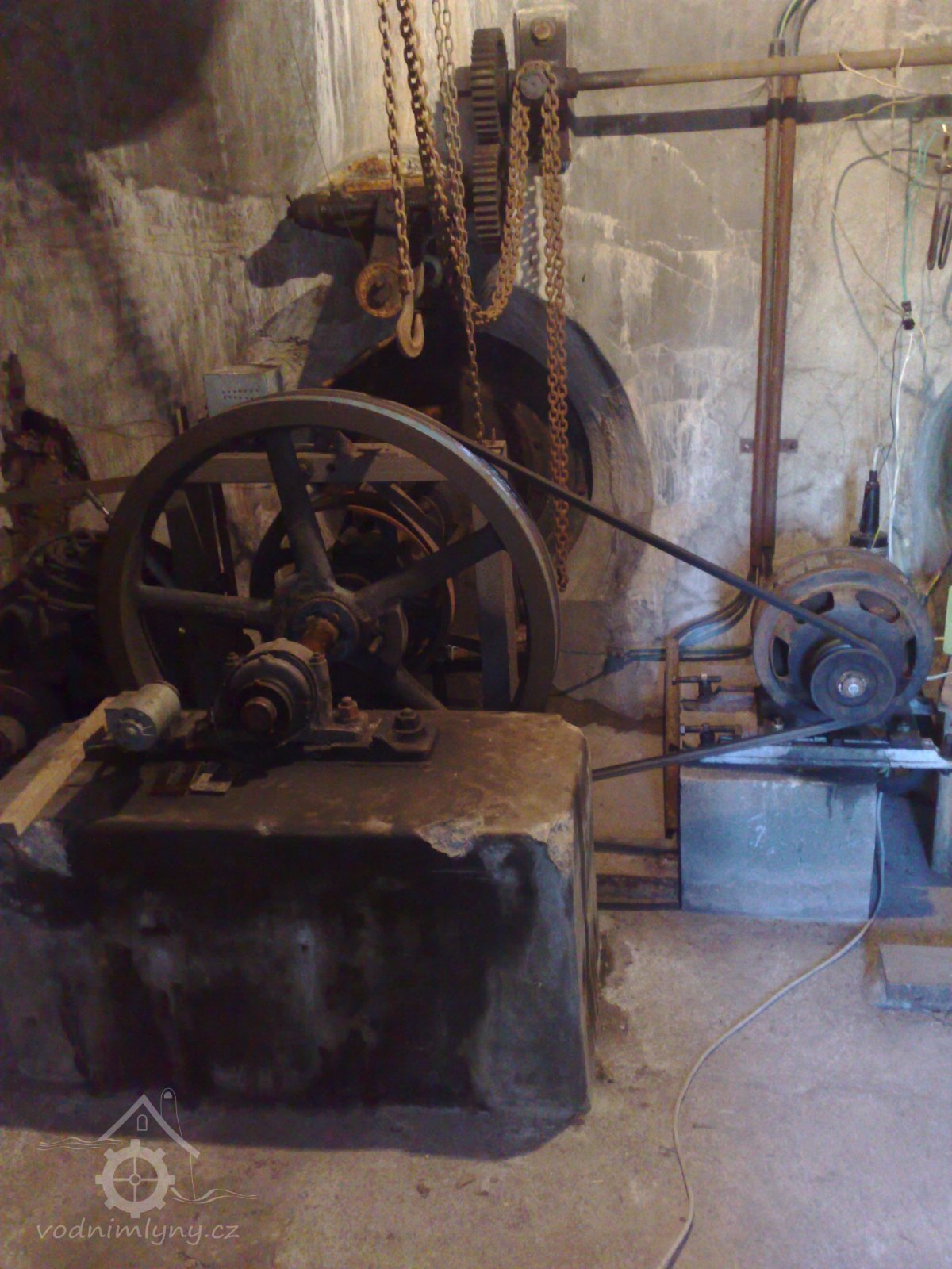 Pod turbinovou kašnou v zděném přístavku u návodní zdi mlýna pak jsou namontovány dvě Francisovy kašnové turbiny, které jsou v provozuschopném stavu.