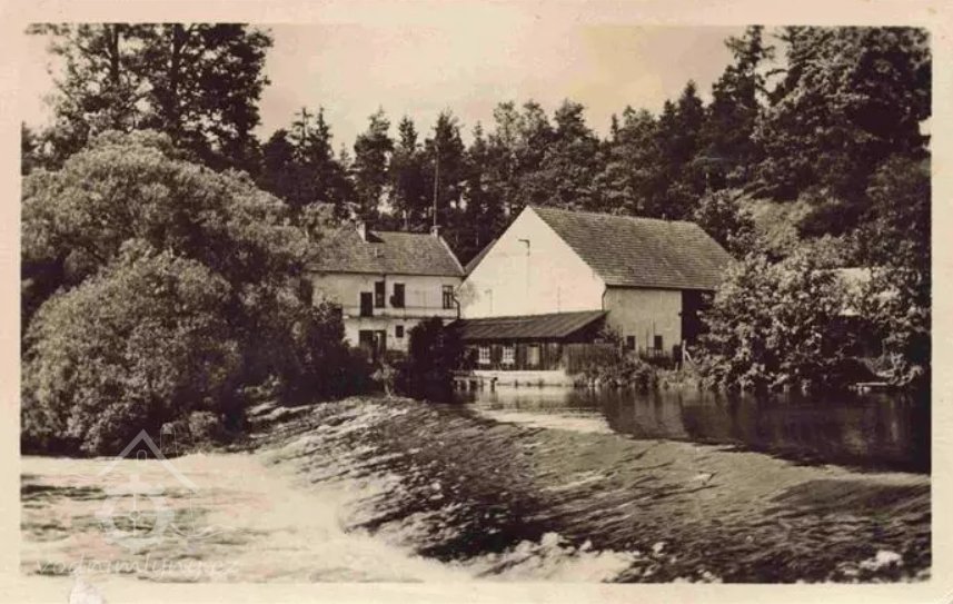 Původní mlýn ze 17. stol. zbourán 1930 a nahrazen novostavbou