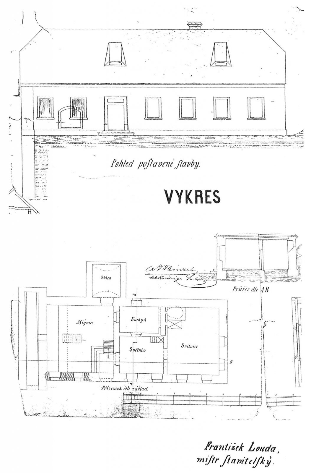 1861 - postaven mlýn Aloisem a Annou (roz. Fingrovou ze Svijan) Riegerovými podle plánů stavitele Františka Loudy. (A.Rieger byl mlynářským na Svijanech a bratrem F.Riegra, mlynáře na Vysokém Kole.)