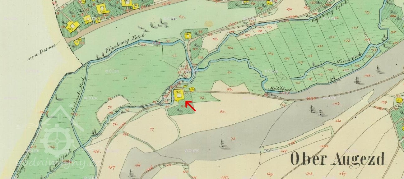 V roce 1930 pohání mlýn a pilu dvě kola na svrchní vodu, první s průtokem 0.063 m3/s a spádem 4.1 m, druhé s průtokem 0.082 m3/s a spádem 5.2 m s celk. výkonem 4.75 k.