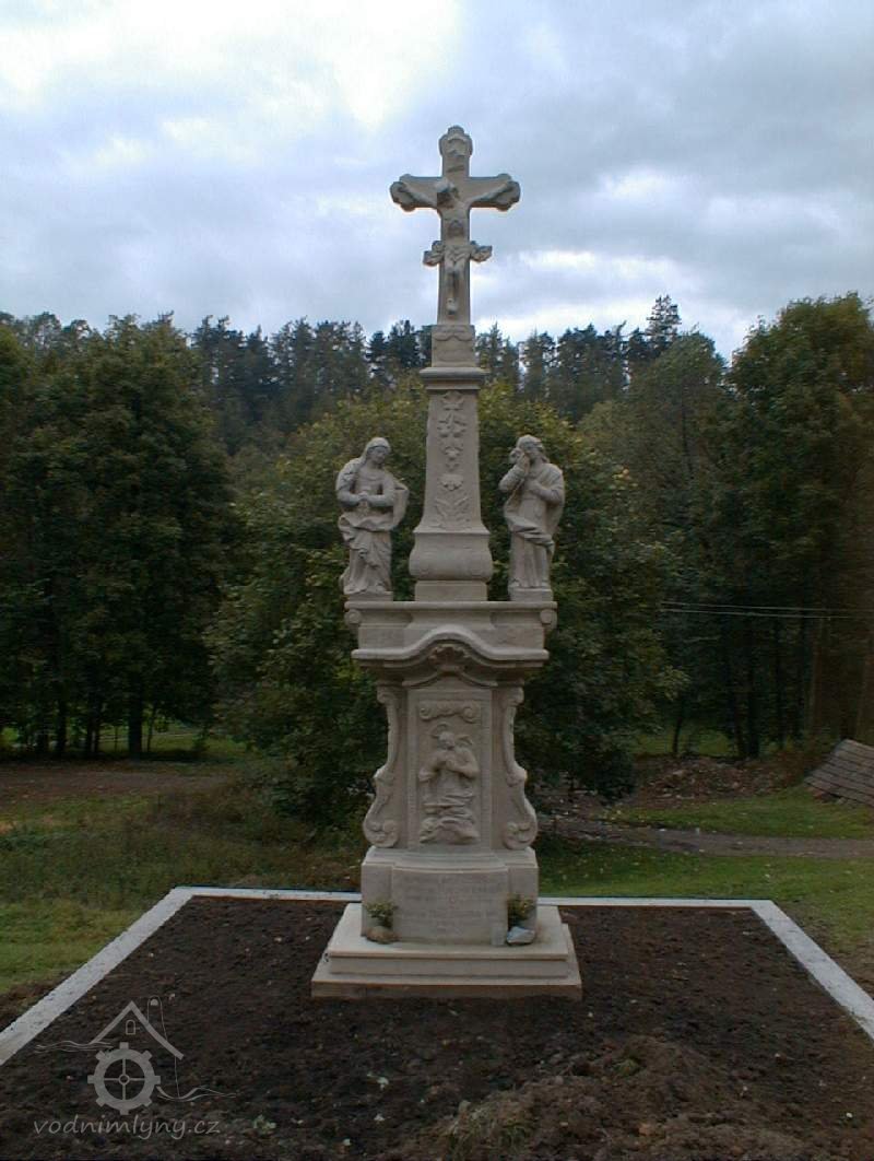 1830 při nahazování řemene na hlavní hnací kolo ve strojovně byl zachycen a rozdrcen mlynářský pomocník, Jan Stříteský na jeho paměť nechal u mlýna vztyčit pískovcový kříž s nápisem na podstavci: "Vy všickni, kterýž jdete cestou, pozorujte a vizte, jestli bolest Vače jako bolest má jest - gen. kap. I." Na zadní starně nápis "Obnoveno roku 1863". Po stranách kříže stojí dvě velké lípy.