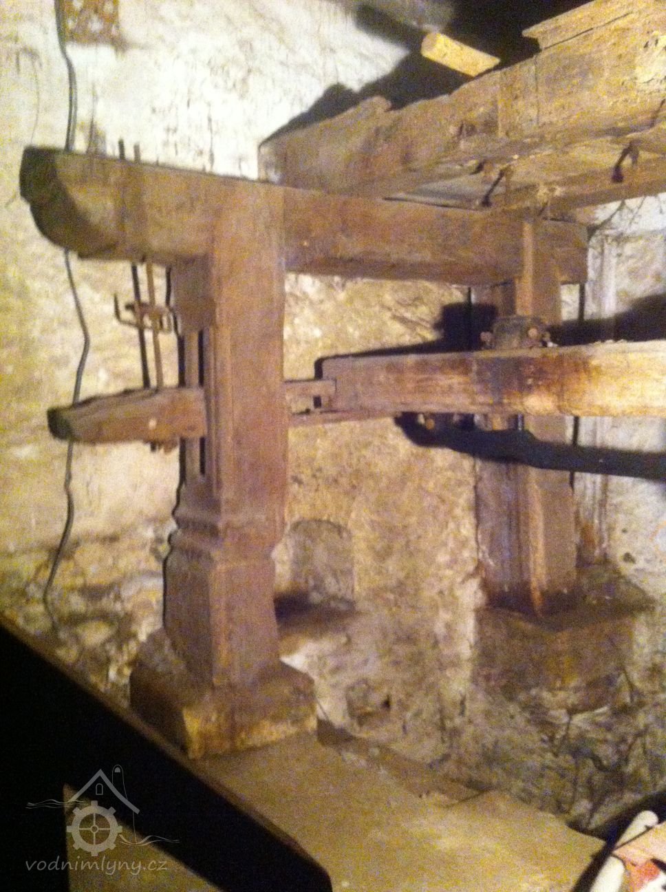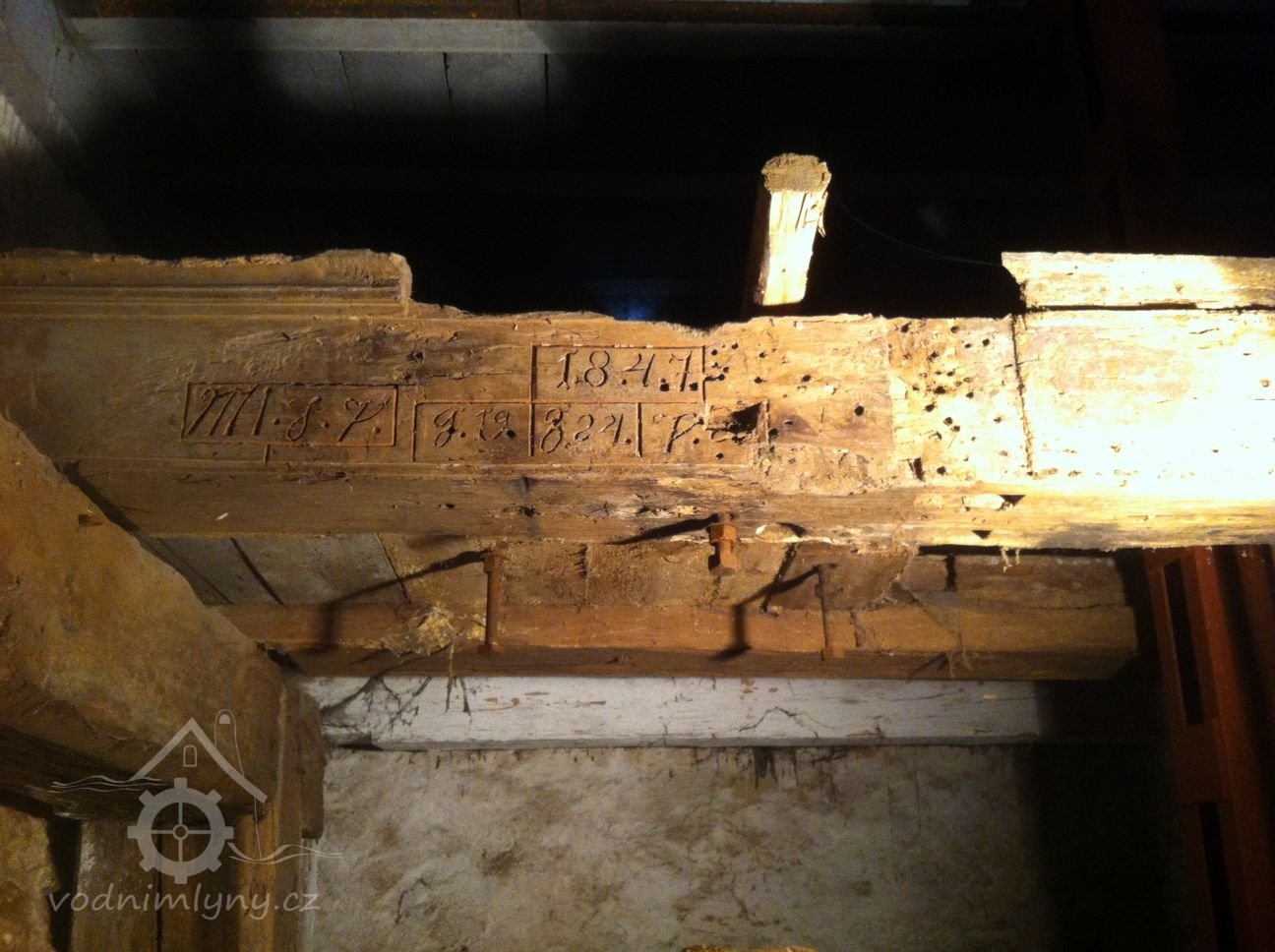Interiér: Současný hlavní vstup je veden půlkruhově zaklenutým průchodem z chodby obytné části do rohu mlýnice, kam se sestupuje po několika stupních. Mlýnice je jednotný, dřevěným patrem předělený prostor, v němž proti vstupu vzadu (při čelní - jižní stěně) je umístěna originální mlýnská hranice s tvarovanými dřevěnými sloupy, s vročením A 1773 a iniciálami JK. Sloupky čtyřhranného průřezu mají jednoduše naznačené architektonické členění na hranolovou shora okosenou patku, baňatý dřík a páskem vyznačenou hlavici. Čelo jím neseného trámu, tvořícího volnou konzolu, je dekorativně zdobeno okosením hran. Hranice nese stopy prostupů a kotvení původního zařízení, které se již nedochovalo. V patře odpovídá této hranici řada subtilních vyřezávaných sloupků, které byly druhotně použity jako opora vestavěné letní světničky (až ve 20. století). Hranice nesla dřevěné patro, kde bývalo mlecí zařízení a násypka, dole bývalo paleční kolo a moučnice. Podle velikosti hranice a stop zařízení (i podle nákresu na indikační skice) měl mlýn dvojí české (jednoduché) složení. V severovýchodním koutě prostoru je v přízemí vestavěn zděný blok bývalé černé kuchyně, dochované již v klenuté podobě s vestavěným komínovým tělesem (úprava na tahový provoz). Ve vnitřní stěně je zachován výklenek štěrbinového typu; v jižní vnější stěně kuchyně - směrem do mlýnice je zachován osvětlovací krbeček pro louče, s odtahem v síle zdi. Jeden ze stropních trámů je založen přímo na zdivo kuchyně.