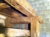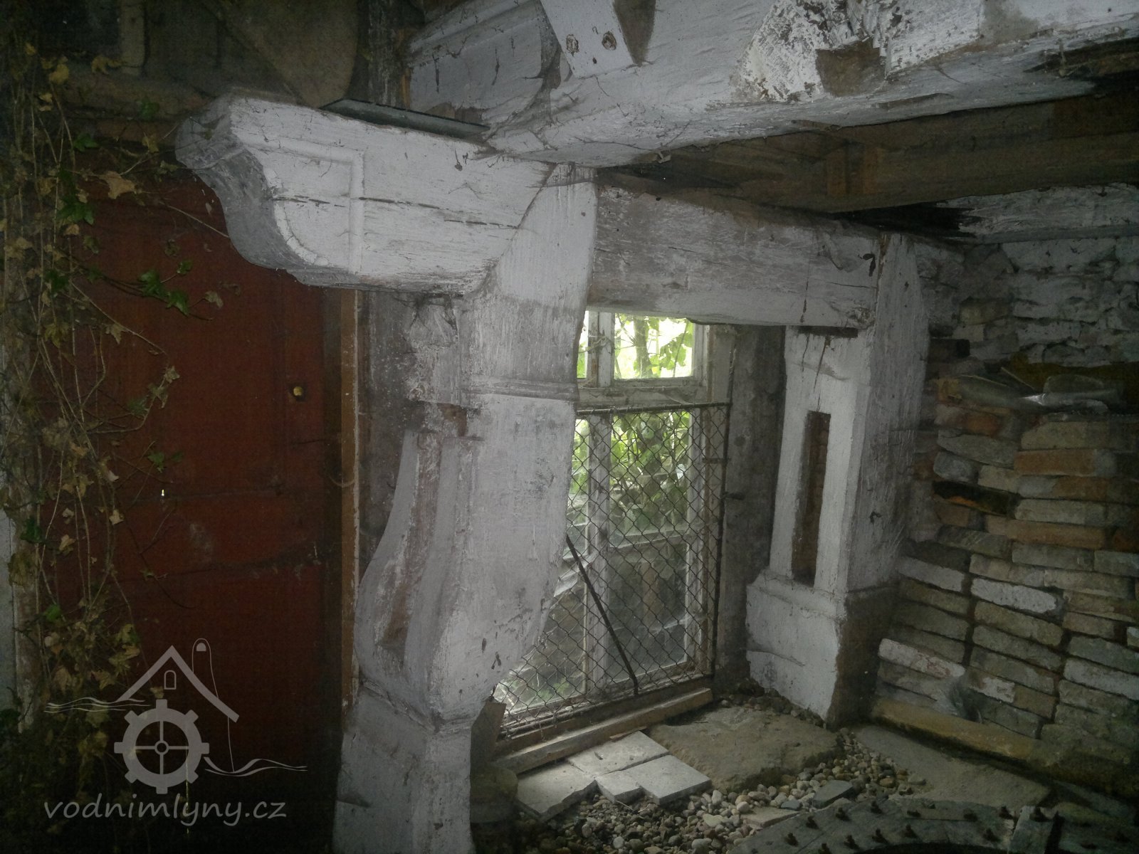 Velikost a poloha oken odpovídá potřebě osvětlení jednotlivých částí interiéru: drobné okénko vede do úzké šalandy, velká okna do prostoru mlýnice. Vstup ze dvora je pravděpodobně (podle provedení) druhotně zřízen v 2. pol. 19. století. V podstřeší je na zdivu uložen roubený věnec, na kterém leží stropní trámy s přesahujícími, rovně seříznutými čely. Na užším čele stavby jsou dvě okna v patře, neboť k přízemí přiléhala lednice s koly. Jedno z oken je upraveno ze vstupu, vedoucího ke kolům. Valbová střecha zde má stále ještě větší přesah.