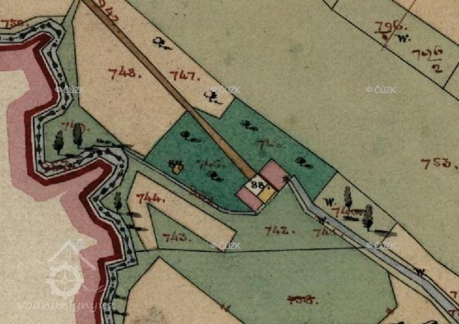 Popis1930: 1 kolo na svrchní vodu, hltnost 0,12 m3/s, spád 4 m, výkon 3,2 HP