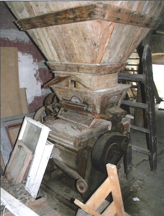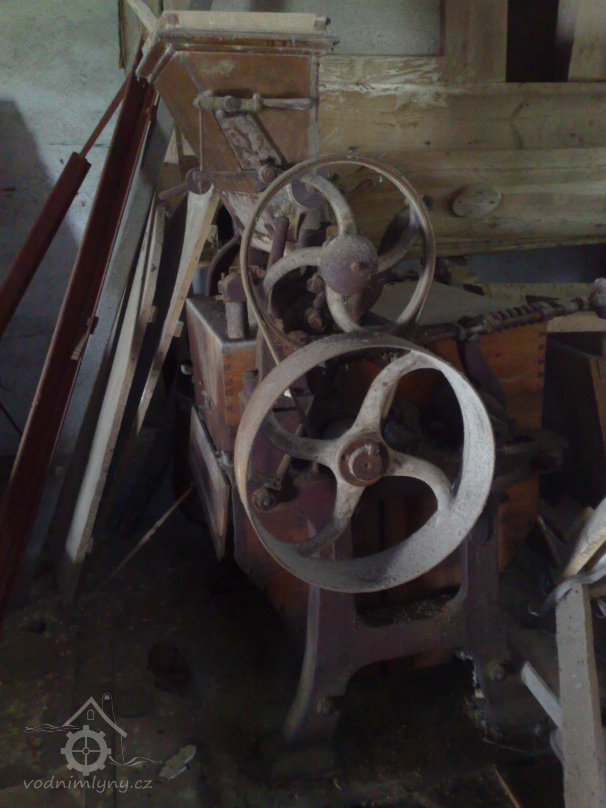 hranolové vysévače, čistička krupice, kapsové výtahy, transmise, paleční kolo, loupačka, koukolník, filtry, pytlovací lávka, dynamo, jirchářská valcha