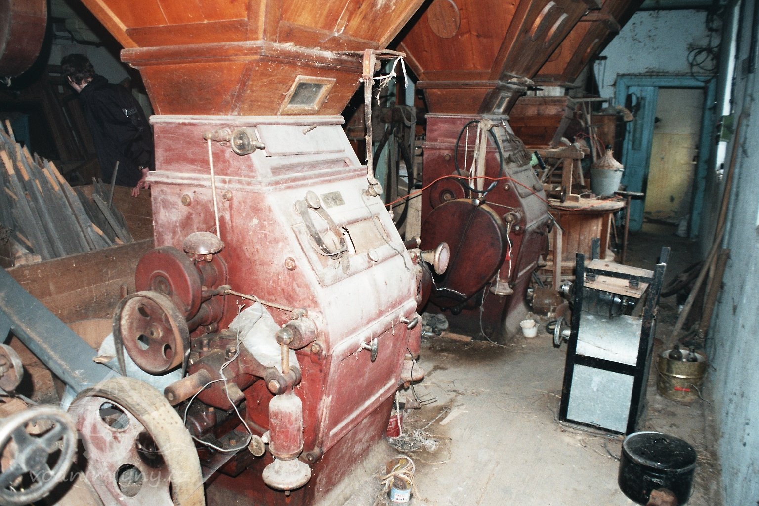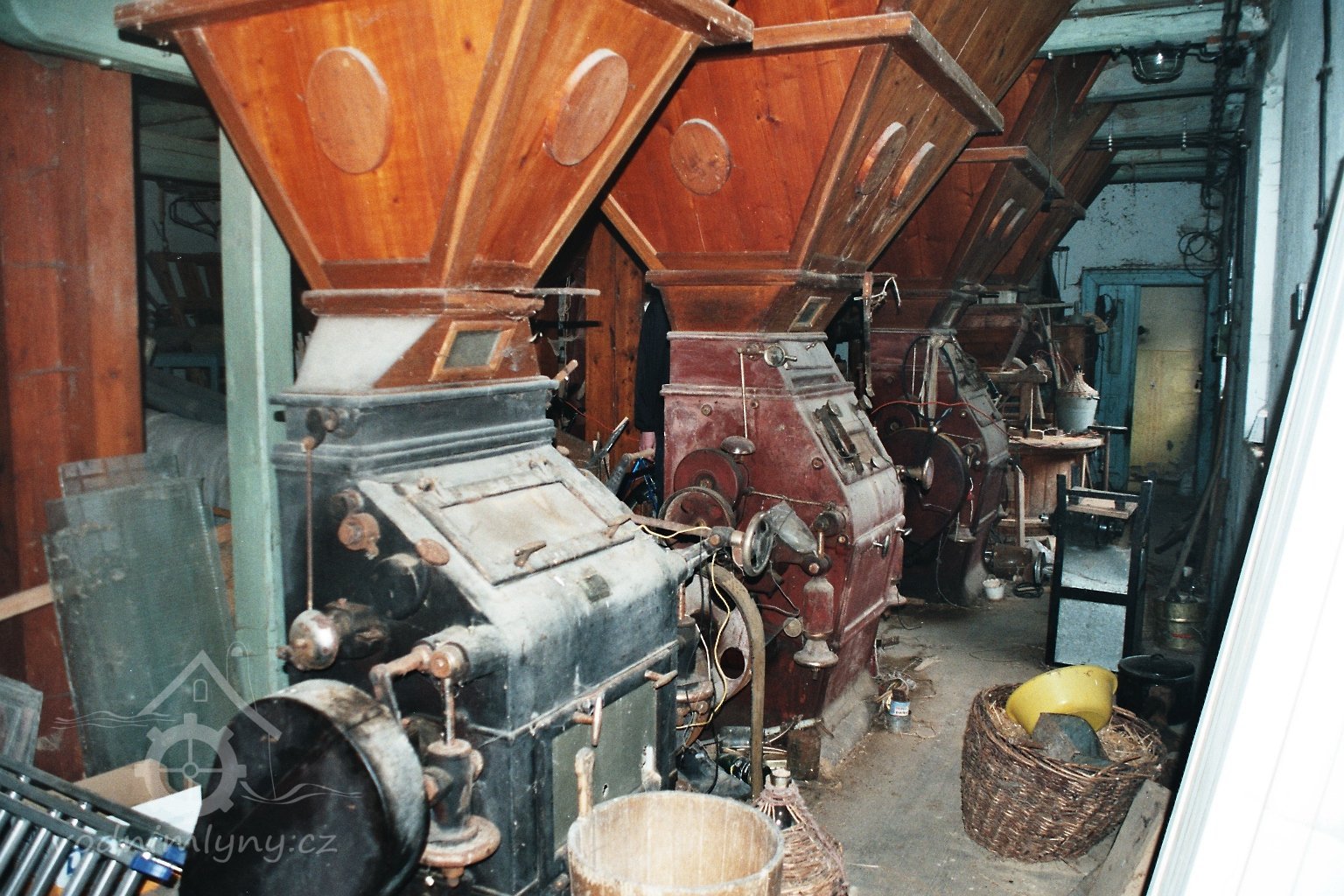 od r. 1919 - 3 válcové stolice, 1 loupačka, 1 vysévač ( rovinný), 2 cylindry (hranolové vysévače), 1 sortýr (předvysévač), 7 kapsových výtahů, 1 dynamo na 120 V.