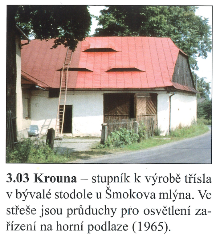Stupník na tříslo byl v roce 1924 modernizován řezačkou kůry na patře stodoly a dole mlýnkem na její drcení. Pohon zajišťovala transmise vodního kola