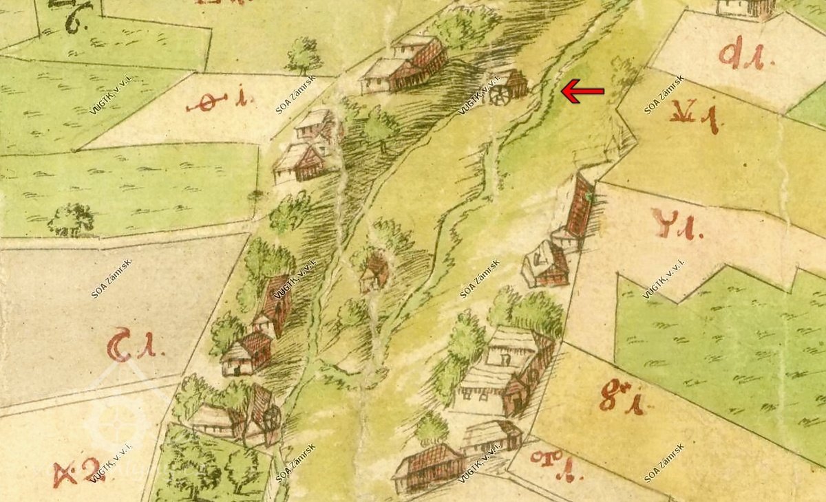 V roce 1930 zde bylo 1 kolo na vrchní vodu, průtok 0,112 m3/s, spád 4,80 m, výkon 4,0 HP.