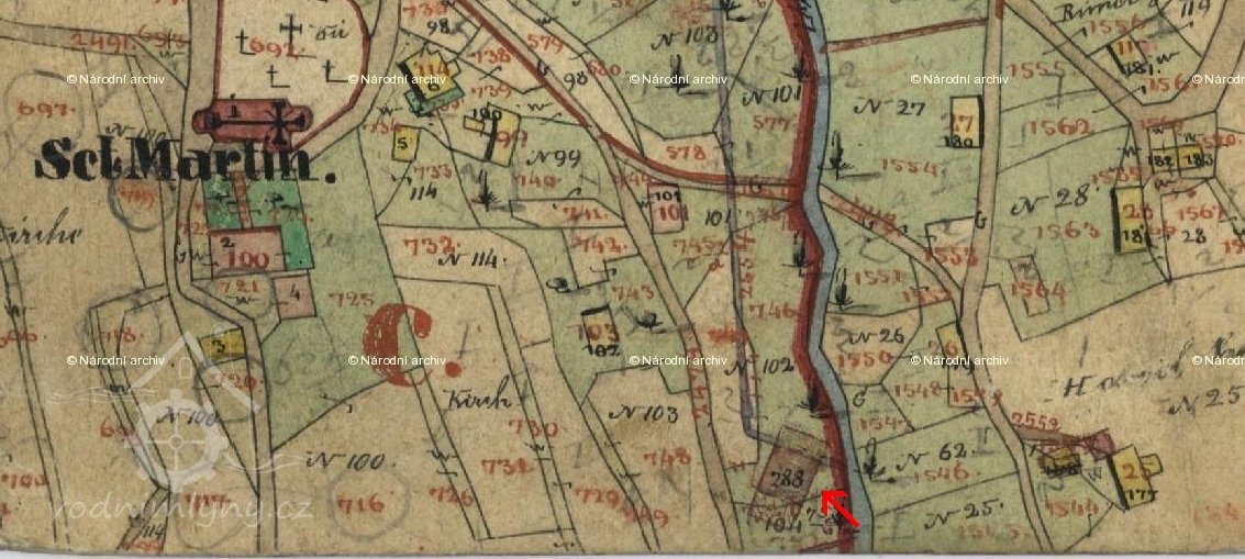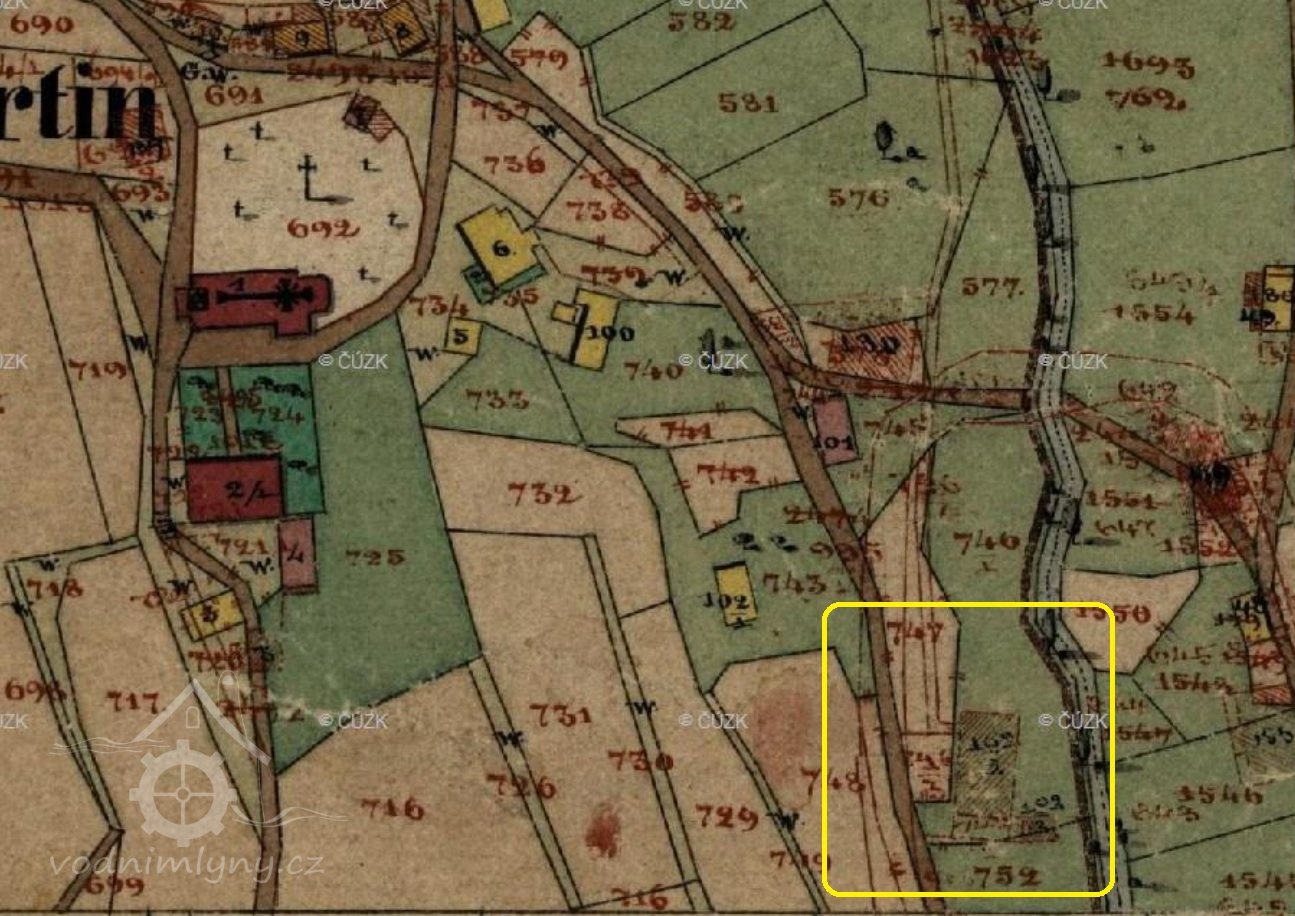 Mlýn se nachází 200 metrů jihovýchodně od kostela sv. Martina ve Zlaté Olešnici.