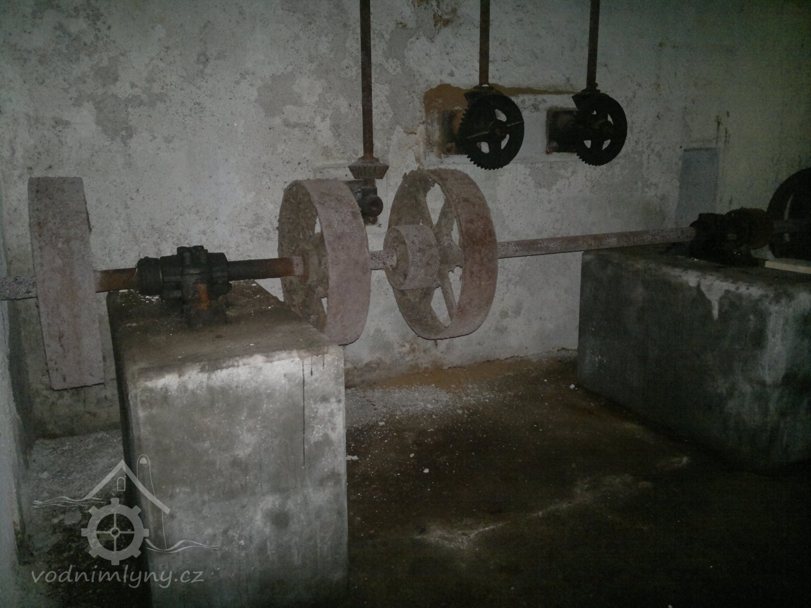 Francisova spirální turbina dvoussavková poháněla přes řemen ve spodních prostorách transmisi v kluzném uložení Sellersova systému na cihelných patkách. Od této transmise byly přes ploché kožené řemeny roztáčeny mlýnské stroje a další rozvodové pohonné transmise ve vyšších patrech mlýnice. Byl poháněn dále generátor. V případě nedostatku vody se spouštěl plynosací motor s plynovým vyvíječem.