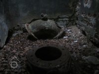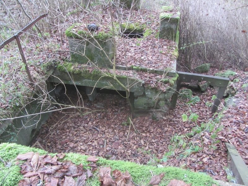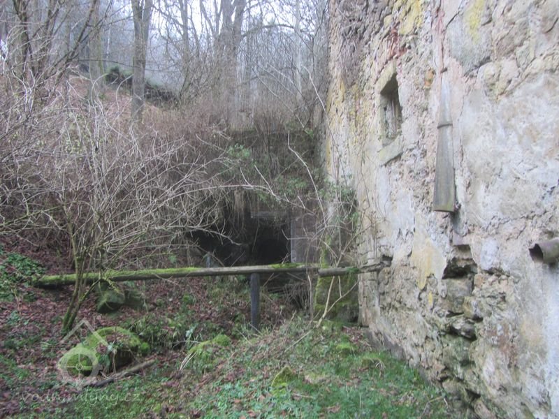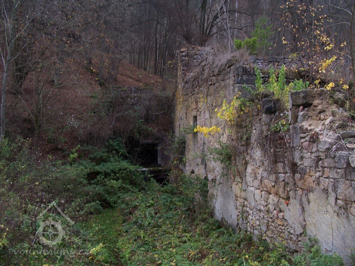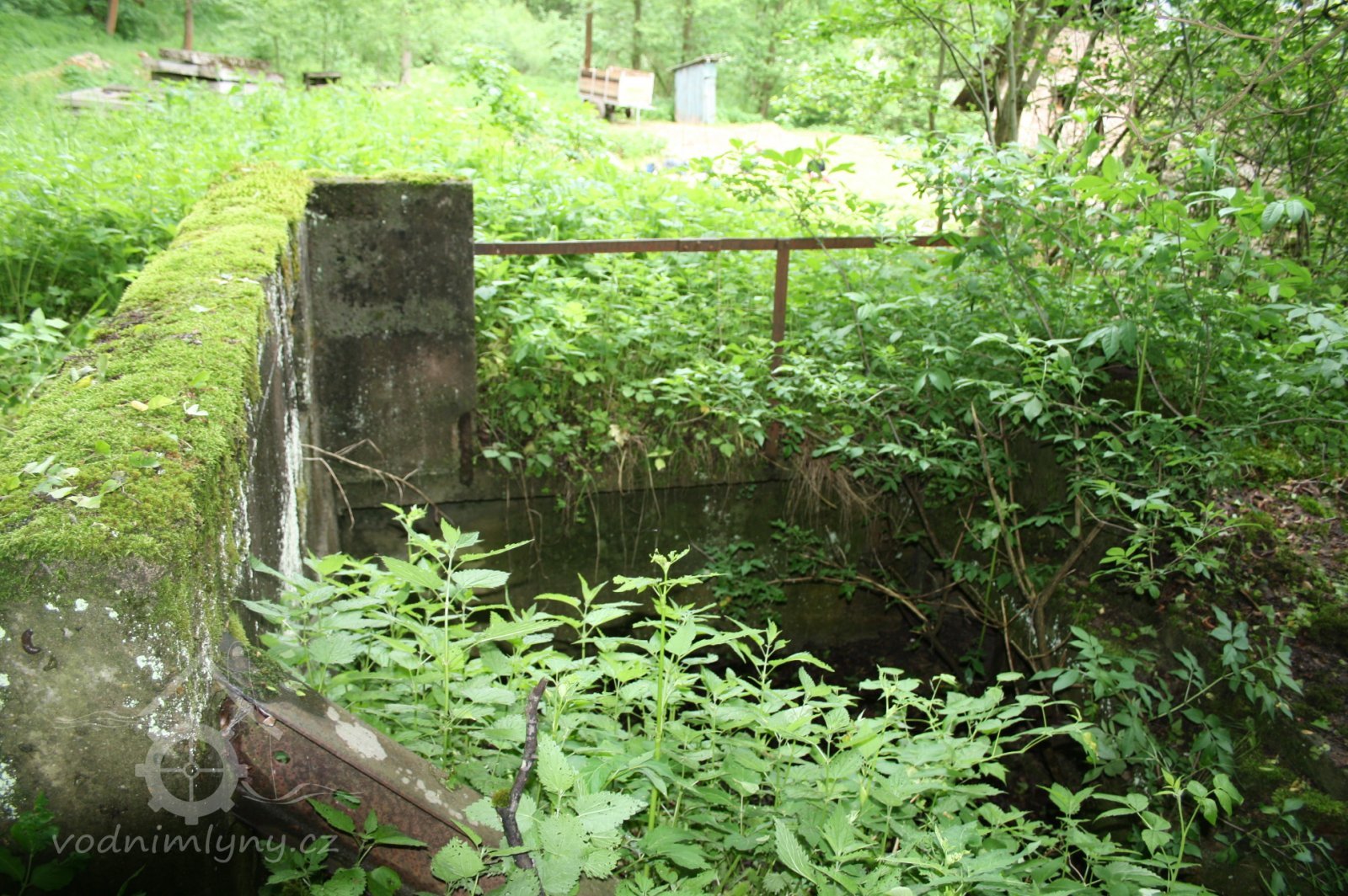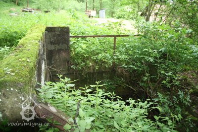 V betonové kašně byla turbína. Na místě je vidět kudy vedl náhon a odtok. Voda proudila přes ústí náhonu skrz česla a přitékala do turbíny. Tu poháněla a roztáčela se tak hřídel. Při větším průtoku voda přetékala přes vedlejší přepad.