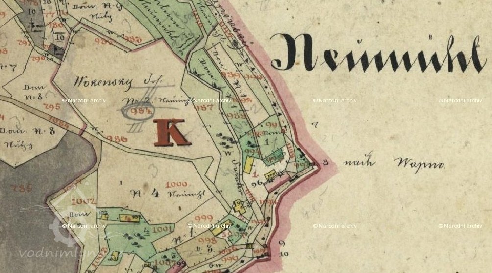 V roce 1802 měl v hlavickém kostele svatbu mlynář z Podvápna Josef Ridl. Za manželku si bral Terezii Bergmannovou z Cetenova. Do roku 1823 se jim na mlýně narodilo 11 dětí. U křtů těchto dětí jsou často jako kmotři zapsáni mlynáři ze sousedních mlýnů Josef Müller a Florián Müller z Pytlíkovského mlýna a Franz Korselt ze mlýna v Zourově. Jako čtvrtý v řadě dětí se narodil syn Florián (1808), který pak po otci převzal mlynářské řemeslo. Florián Ridl (Riedel) se oženil s Johannou Rollovou z Dubé. Když se jim v roce 1831 narodilo první dítě, syn Josef Franz, je již Florián v matrice uváděn jako  mlynář v Novém Mlýně č. 1. Do roku 1838 se jim ještě narodily další 3 děti, Anna Elisabetha (1835) Ferdinand Franz (1836) a Florian (1838). V roce 1838 Johanna zemřela a Florian Riedel se znovu oženil. Jeho druhou ženou byla Anna, dcera mlynáře Josefa Reitera z Chocnějovic. V letech 1839 – 1865 se ji narodilo celkem 11 dětí. (MH)