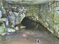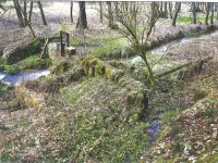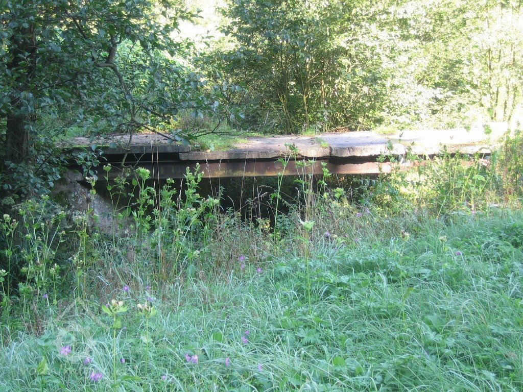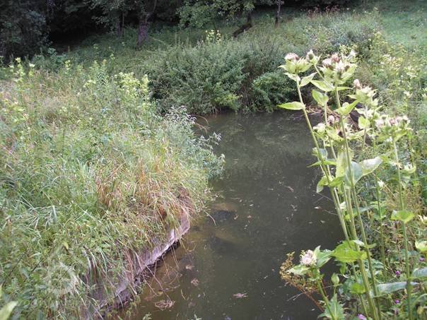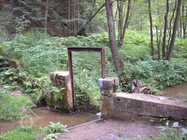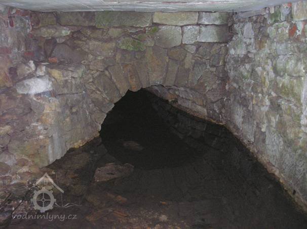 Ve vzdálenosti 360 m nad mlýnem byl na Zábrdce jez tvořený třemi stavidly o šířce jednotlivých částí zleva 1,16 m, 1,56 m a 1,41 m. Výška u všech stavidel byla 1,42 m. Mlýnský náhon začínal na levém břehu potoka. Na skalní stěně vedle něj byl umístěn vodní cejch – do skály vyrytá horizontální rýha se dvěma značkami ve tvaru písmene V. Rýha označovala nejvyšší hladinu, kterou mohla zadržená voda nad stavidly dosáhnout. (MH)