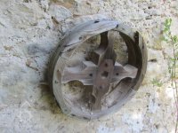 Řemenice na hřídelí turbíny poháněla dlouhým řemenem mlátičku a lis na slámu v dřevěné budově naproti mlýnu.