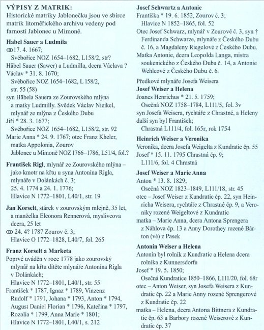 Vdovec Josef Schwartz po smrti Rozalie kouopil celý mlýn15. 1. 1850 a brzy na to se znovu oženil s Antonií Langovou, dcerou soukenického mistra z Českého Dubu. V červnu 1852 se jim v Zourově narodila dcera Františka. (MH)