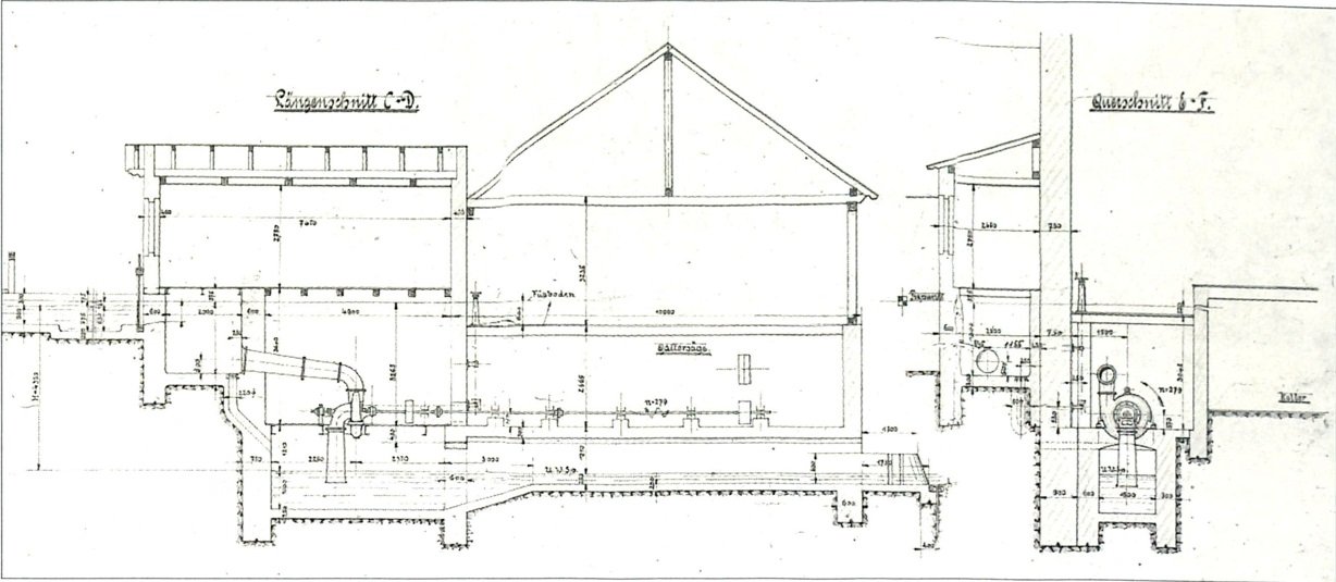 V roce 1930 jsou uváděny 2 Francisovy turbíny, hltnost 0,204 m3/s, spád 4,1 m, výkon 8,6 HP.
