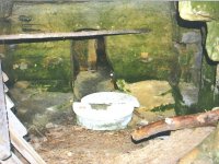 Pitnou vodu brali ve sklepě ze studny. Vchod je vybourán a litinová pumpa ukradena. Dnes je vstup za dvěma smrky. Pamatuji je metr vysoké.