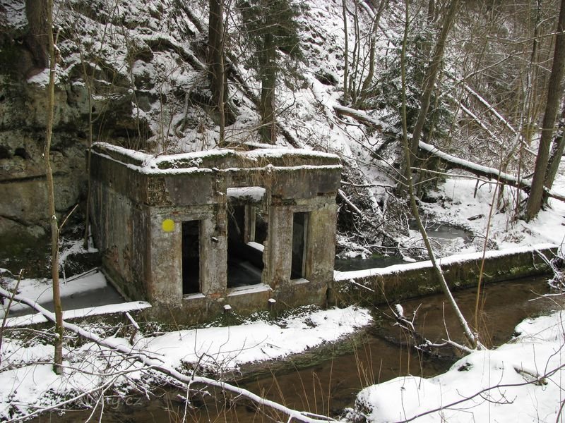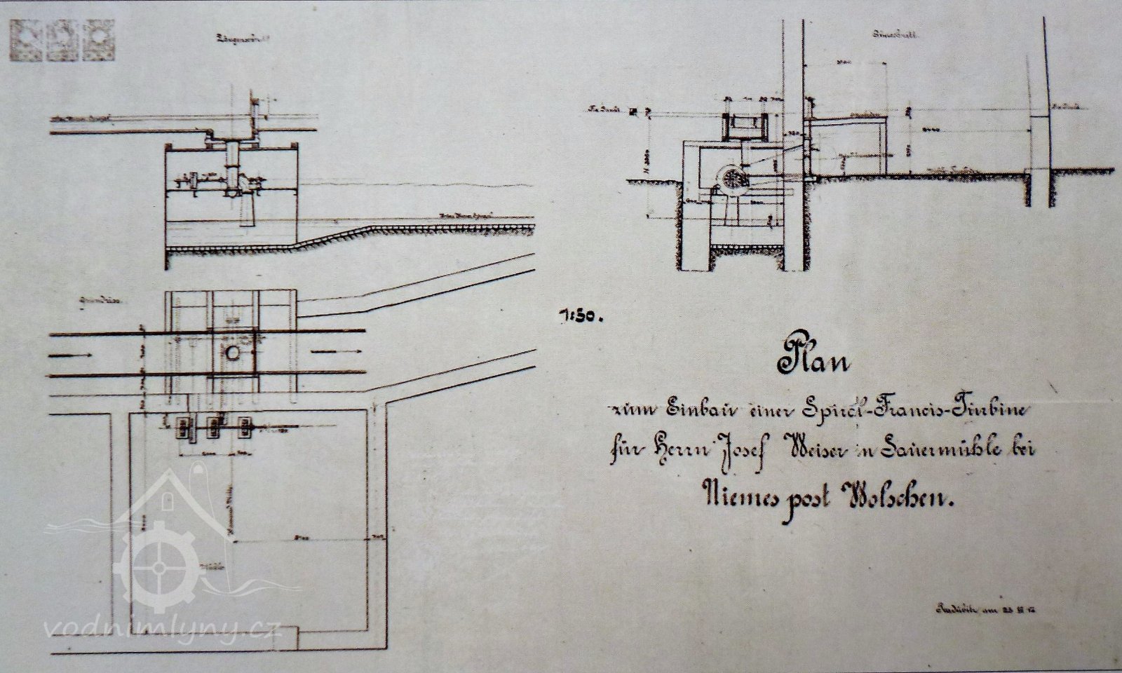 Popis1906 instalována Francisova turbína pro pohon pily, hltnost 162 l/s, kolaudována 7.1.1906.