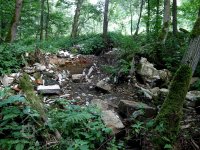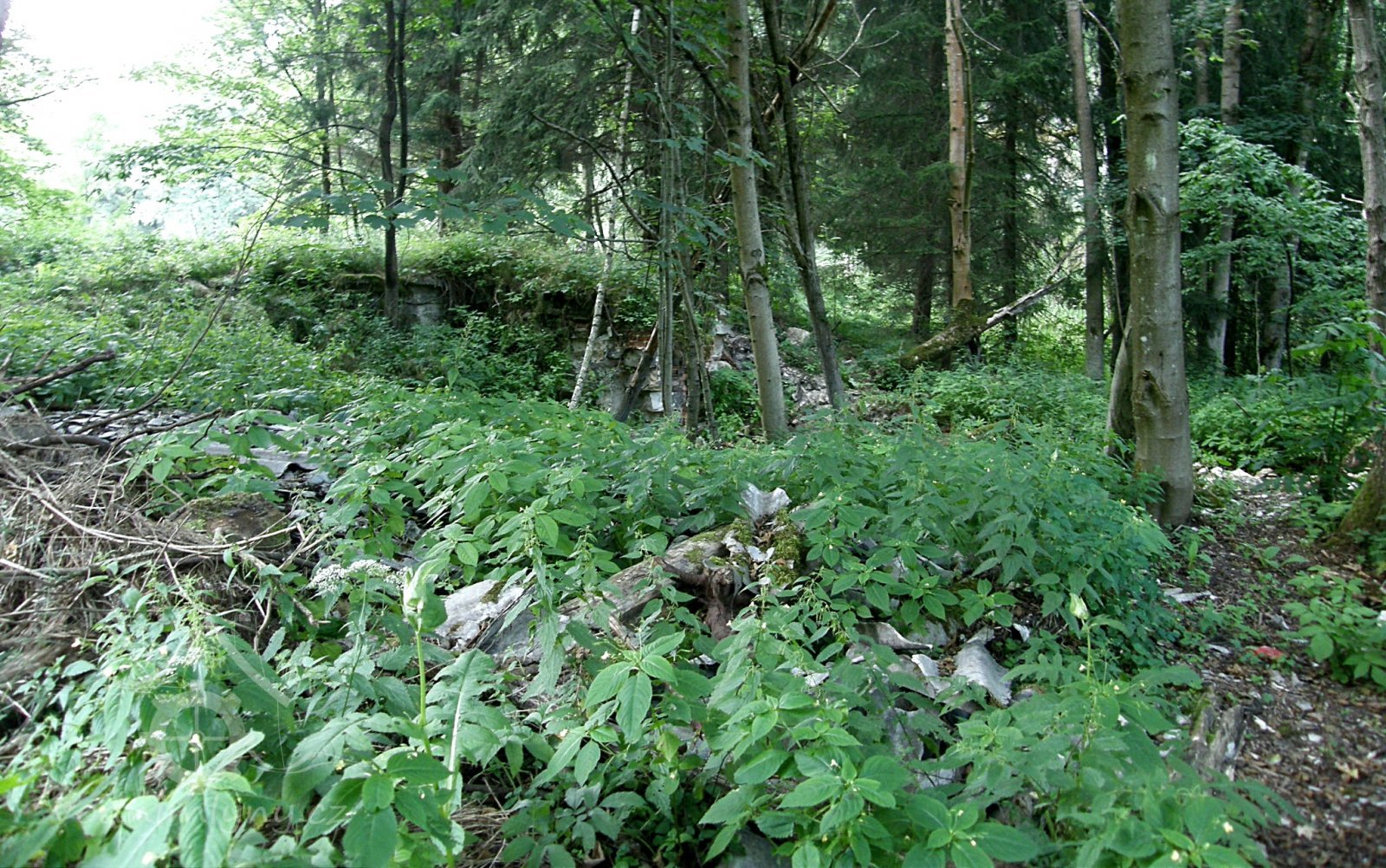 Z budov zbyly jen ruiny zdí a ztrouchnivělé trámy\n
