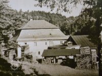 Naproti mlýnu byly stáje, chlévy a mladší garáž a několik hospodářských budov.
