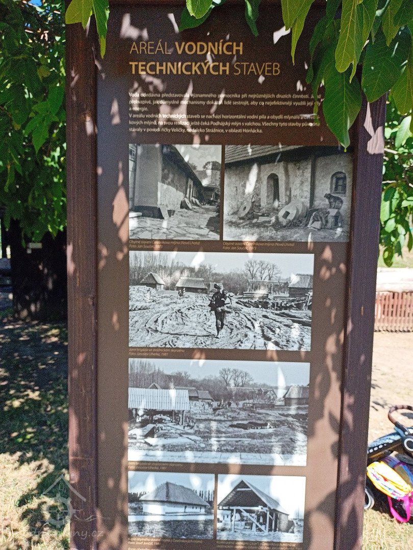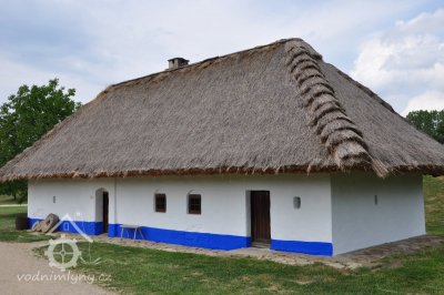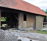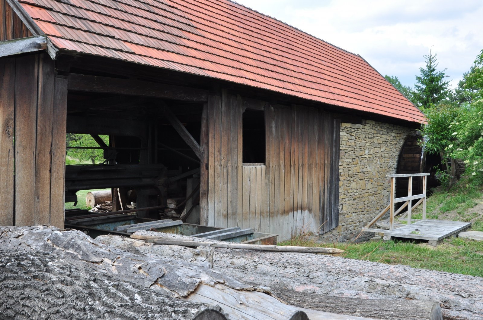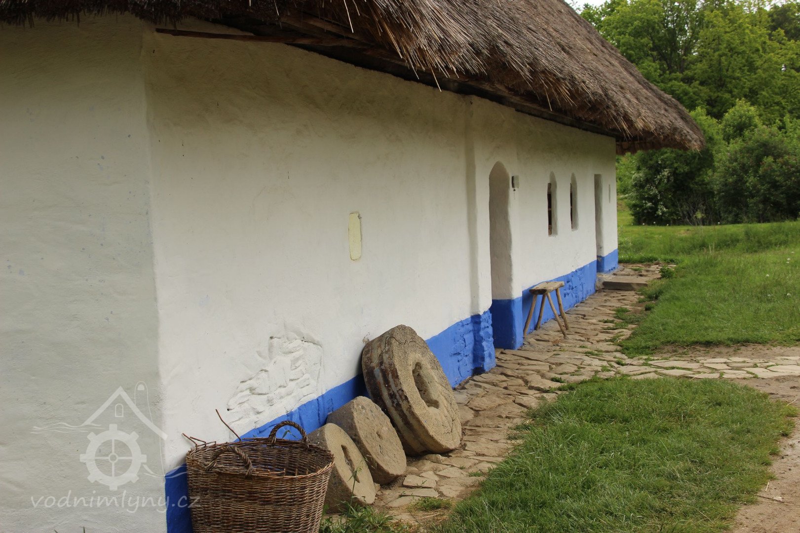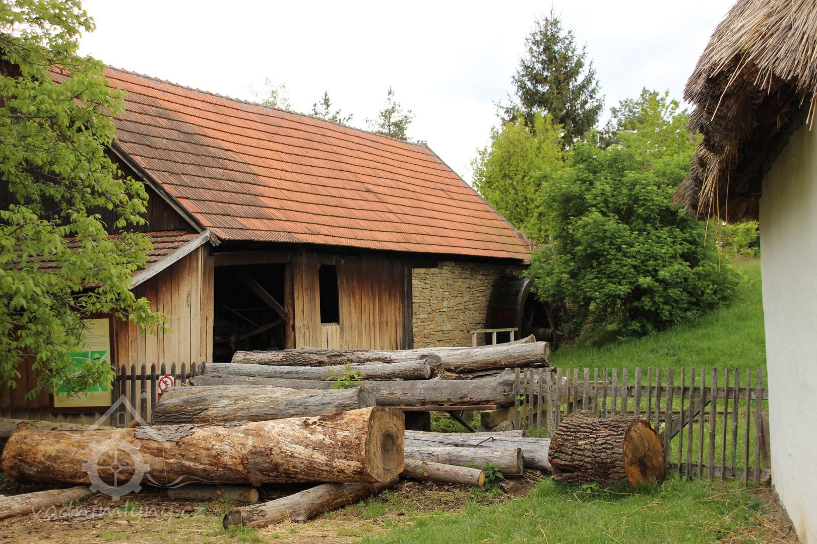 Obytné stavení mlýna z lokality Čerešníkovy mlýny (Nová Lhota) s objektem horizontální pily z téže lokality, přenesené do Muzea vesnice jihovýchodní Moravy ve Strážnici.