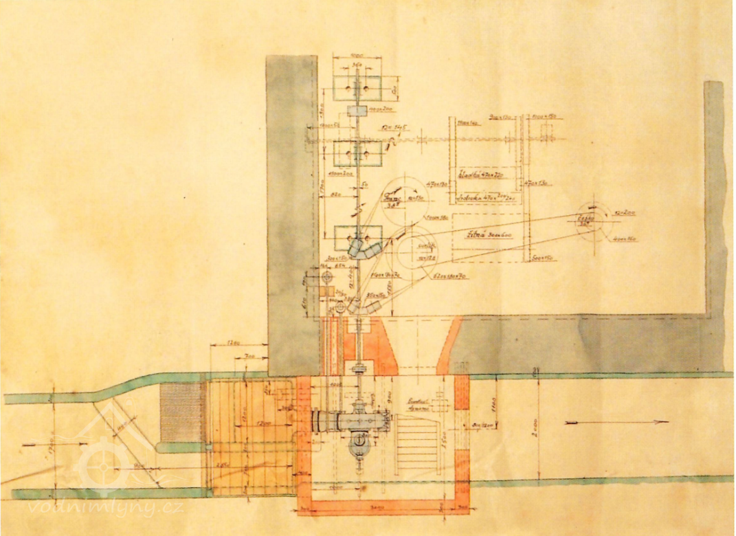 PopisOd roku 1923 Francisova turbína. Specifikace turbíny v roce 1930 - hltnost 0,216 m3/s, spád 4,797 m, výkon 10,2 HP (MH)