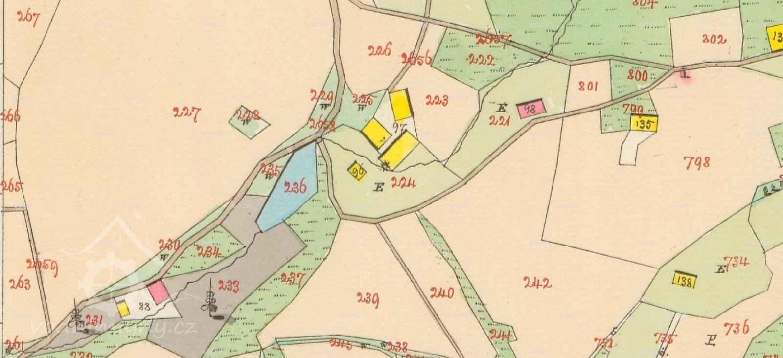 Popis1930: 1 kolo na svrchní vodu, hltnost 0,06 m3/s, spád 7,7 m, výkon 4 HP