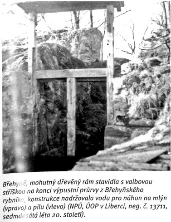 Od Břehyňského rybníka byl k místnímu mlýnu prokopán ve skále náhon, který byl původně opatřen dřevěným stavidlem, jež později nahradila betonová hráz se stavidlem kovovým. Stopy ve skále po původním konstrukčním řešení se dochovaly do současnosti.