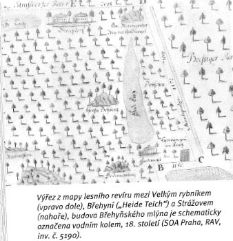 Matrikami je na břehyňském mlýnu - Heidemühlu doložen v letech 1686 - 1694 mlynář Georg Puntzman se ženou Juditou. Vypadá to, že u mlýna stála sklárna jelikož se tu objevuje roku 1694 Johannes Palme glaßer in der Heidemühle. (JK)
