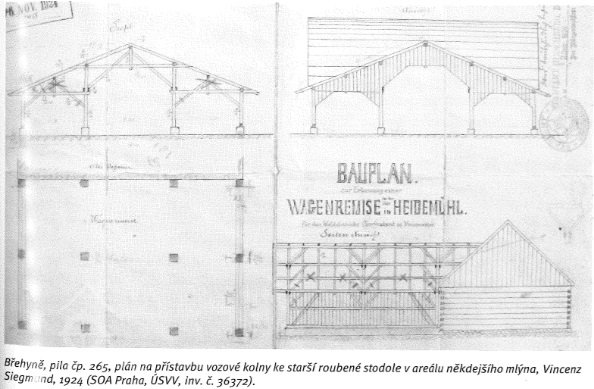 1934 přístavba brusičské komory, arch. Hubert Rosler ze Starých Splavů