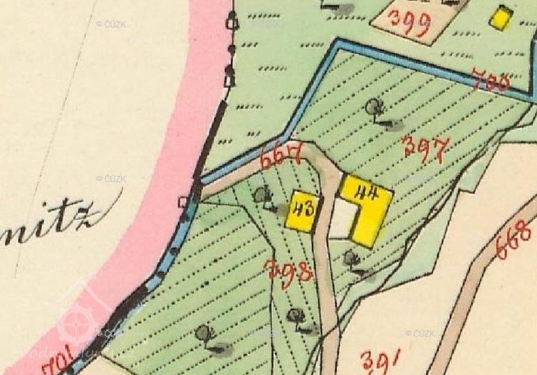 1758 po + J.J. syn Jan Jenček ujal ujal tu chalupu s mlejnem za 198 zl. 20 kr. rýn.