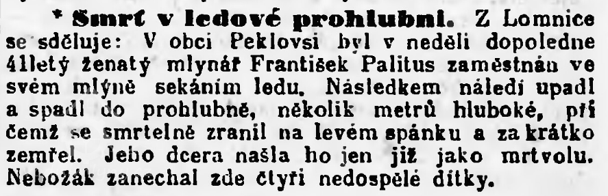 1794 od věkem sešlého J.J. syn František Jenček mlýn v Peklích č. 6 se 12 M 1 m rusatik a 3 M 6 m emfyt. grunty za 500 zl. rýn,
