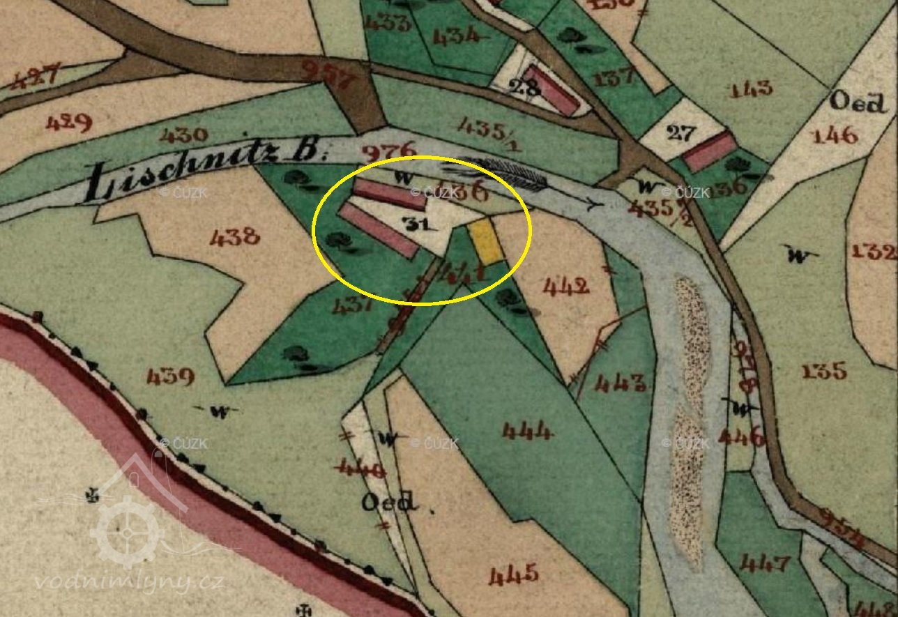 Mlýn leží na Líšnickém potoce na okraji obce Horní Líšnice. Mlýn původně na svrchní vodu, byl zařízen válcovou mlecí stolicí firmy UNION České Budějovice. Dnes slouží k obytným účelům.