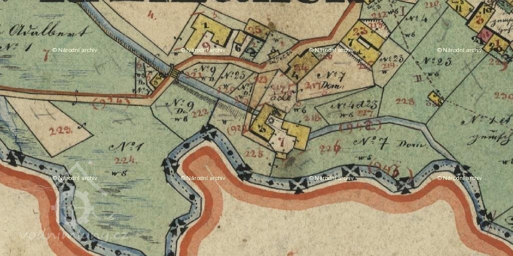 Taktéž mapa Josefského vojenského mapování z 60. až 80. let 18. století zaznamenává symbol vodního kola,což jednoznačně dokazuje existenci technického objektu s vodním pohonem. Jedná o sledovaný vodní mlýn, přestože na sousedním mapovém listu je v blízkosti tohoto vodního díla uvedeno: „Eisen hamer“ a při pozorném prozkoumání mapy zjistíme, že se severně od mlýniště nynějšího čp. 7 nachází další značka se symbolem vodního kola – tato značka je situována přímo pod vyznačenou hrází vodní nádrže. Ovšem zde se jedná o Křižánky moravské, tedy již na Novoměstském panství.
