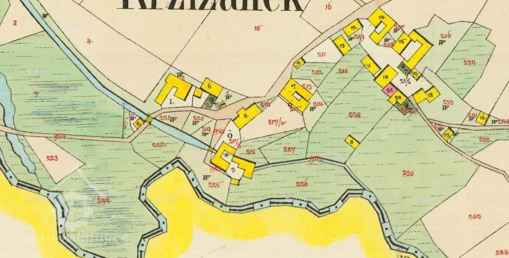 Existenci mlýna a pily potvrzuje k roku 1837 Topografie od J. G. Sommera, v níž se dozvídáme, že v Křižánkách stojí 2 mlýny s jednou pilou, tírnou lnu, přádelnou a tkalcovnou [„2 Mühlen mit einer Brettsäge, Flachsbau, Spinnerei und Weberei“].