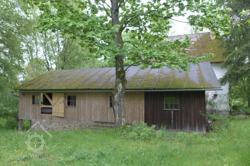 K hlavní obytné budově mlýna ze severní strany přiléhá hospodářský objekt s technickým zázemím bývalých provozů.